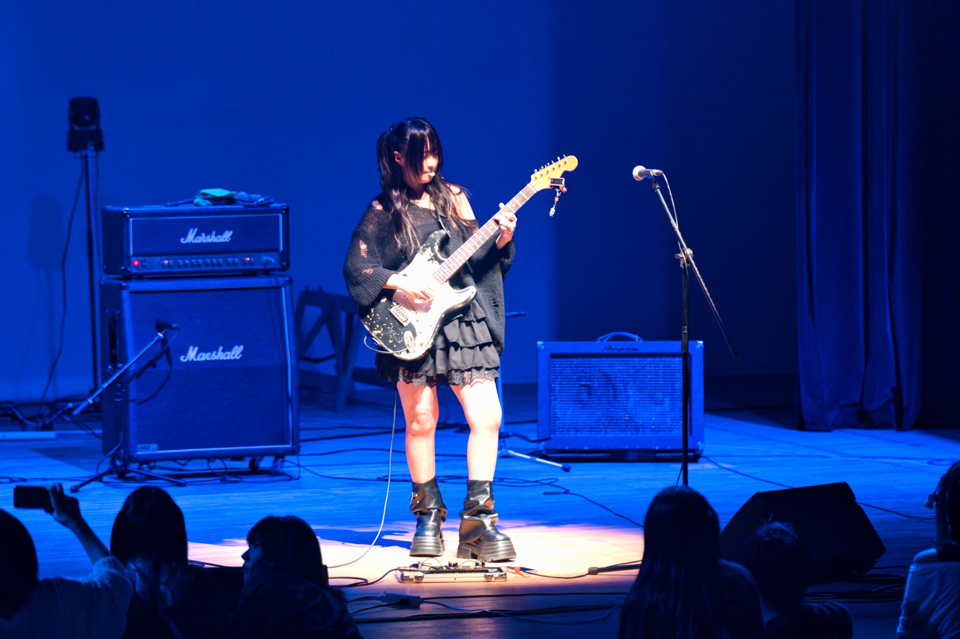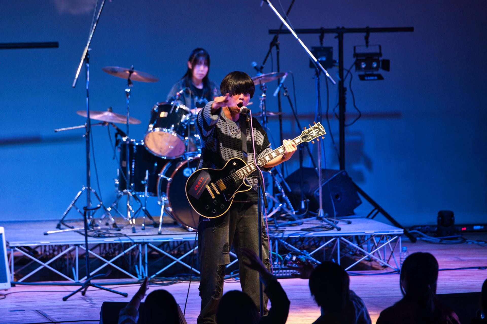 9月14日(日)、富士市ロゼシアターで開催された「アオハルHIGH SCHOOL FES2025」に、本校軽音楽部のバンド「制服機動隊」「-459.67℉」「盗難deep」が出演しました。このイベントは、音楽活動を楽しむ高校生バンド達のために、音楽の成果発表の場を提供し、大きな会場で大勢の観客の前で発表できる喜びを経験させるものです。会場は多くの来場者でにぎわい、熱気に包まれました。本校から出演した3バンドは、それぞれ個性あふれるステージを披露しました。中でも「制服機動隊」は、夏休みに作曲したオリジナル曲「Gymnaster」を演奏し、力強いサウンドと表現力で会場を大いに盛り上げました。観客の手拍子や歓声が響き渡り、ステージと客席が一体となる瞬間もありました。生徒たちは、日頃の練習の成果を存分に発揮し、音楽を通じて自分たちの思いを届けることができました。出演後には達成感に満ちた表情を見せ、仲間との絆もさらに深まったようです。今後も、軽音楽部の活躍にぜひご注目ください!