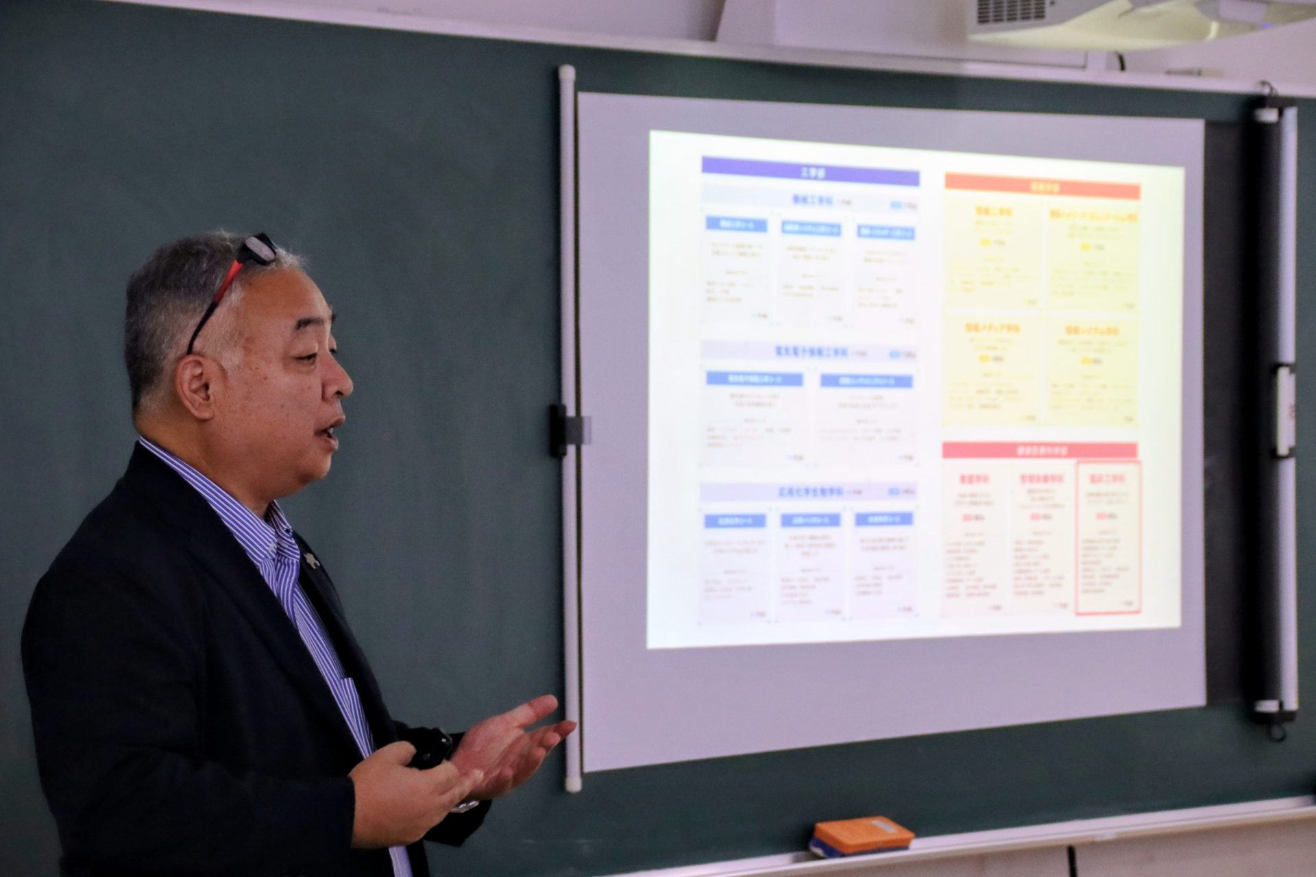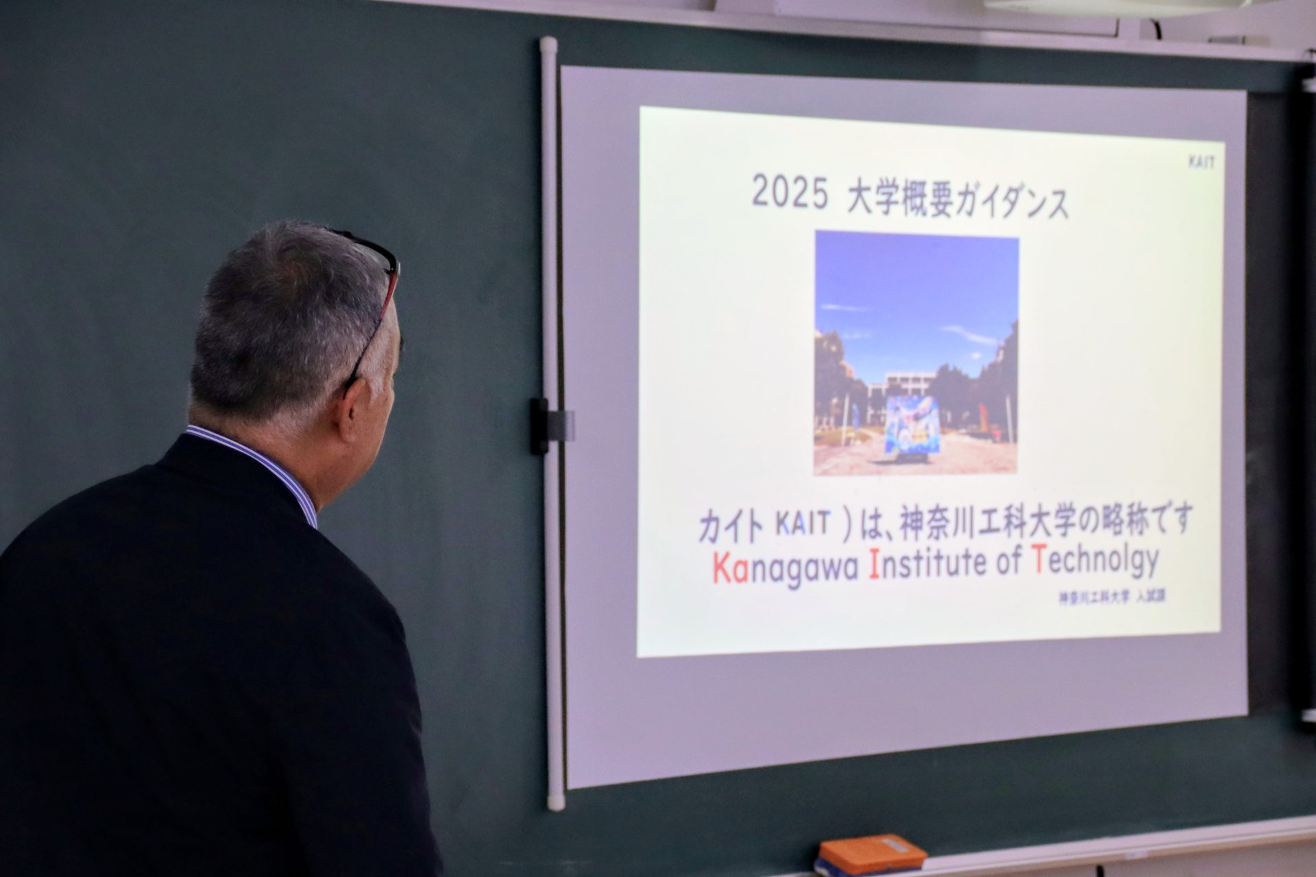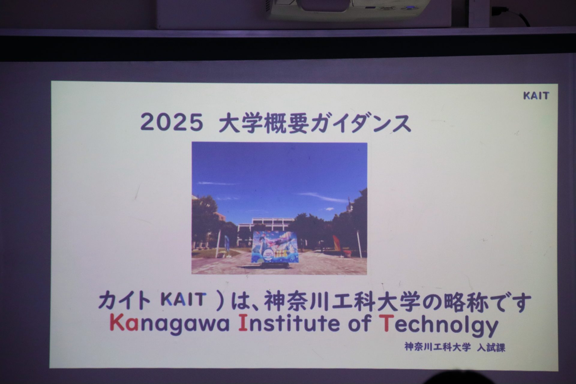 9月22日(月)、1年生の選抜補講に神奈川工科大学の先生をお招きし、理系学部や理系分野に関する出前講座を実施しました。この講座では、理系学部での学びの内容や、大学での研究の面白さ、将来の進路につながる技術分野について、わかりやすくご紹介いただきました。参加した生徒たちは、普段の授業では触れることの少ない専門的な話に興味津々で、実際の研究事例や大学生活の様子なども交えた講義に、熱心に耳を傾けていました。理系分野への関心を高めるとともに、進路選択に向けて視野を広げる貴重な機会となりました。今後も、こうした外部講師による講座を通じて、生徒たちの学びの意欲を育んでいきます。