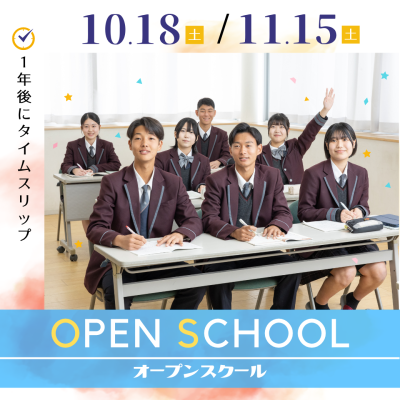 明日、10月18日(土)は中学生対象の募集イベント「オープンスクール」が開催されます。簡単な学校紹介の後、1年生の授業を中心に授業見学にご案内いたします。普段の授業の様子をご覧ください。予約サイト(miraicompass)のマイページより「受付票」を印刷し、当日受付へ提出してください。また、上履き・下足袋をご持参下さい。