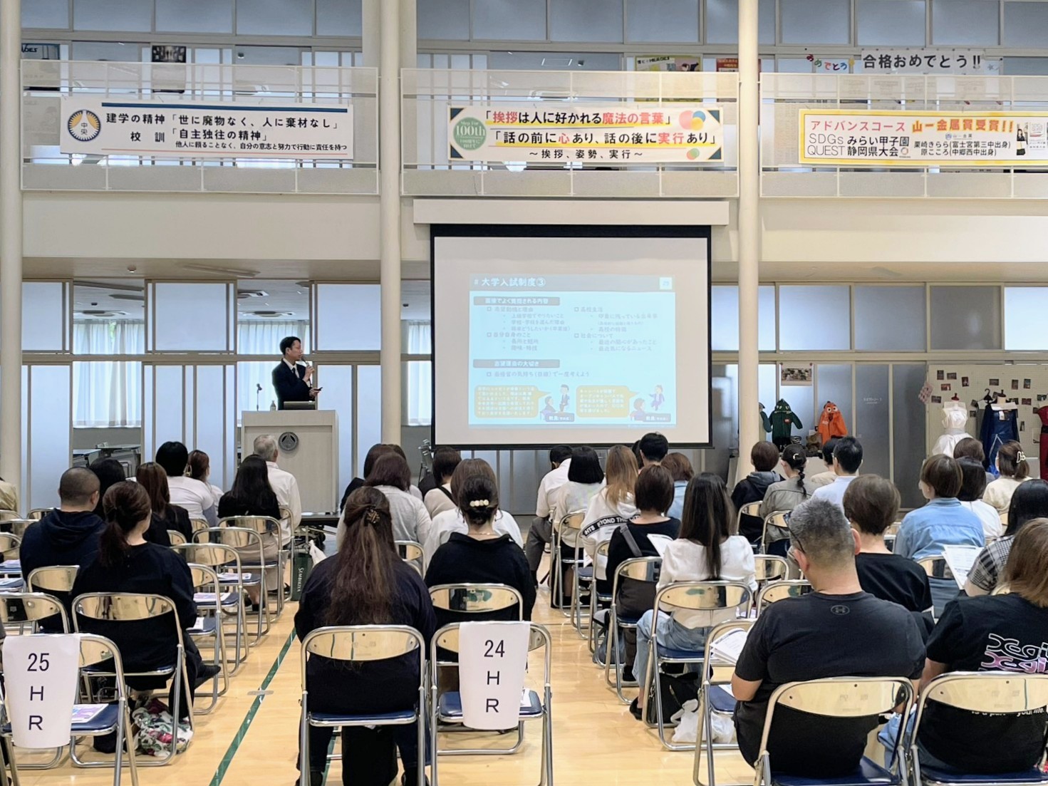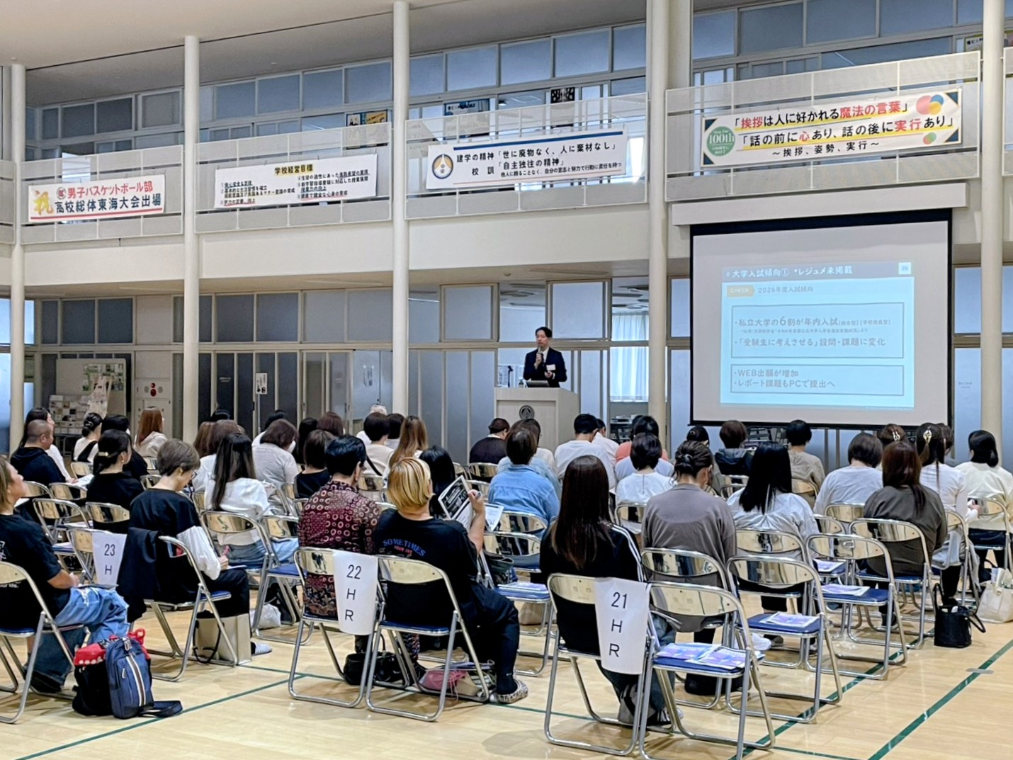 10月4日(土)に2年生の保護者を対象とした進路所要経費説明会が行われました。説明会では、今後の進路選択に向けて必要となる費用や準備について、具体的な情報提供が行われました。大学・専門学校・就職など、進路によって異なる経費の概要や、奨学金制度、入学金・授業料の支払い時期などについて、資料をもとに丁寧な説明があり、保護者の皆様も熱心に耳を傾けていました。また、進路決定までのスケジュールや、家庭でのサポートのポイントなどについても触れられ、今後の進路選択に向けて理解を深める機会となりました。生徒一人ひとりが安心して進路を選択できるよう、学校・家庭が連携して支えていくことの大切さを改めて感じる時間となりました。ご参加いただいた保護者の皆様、ありがとうございました。