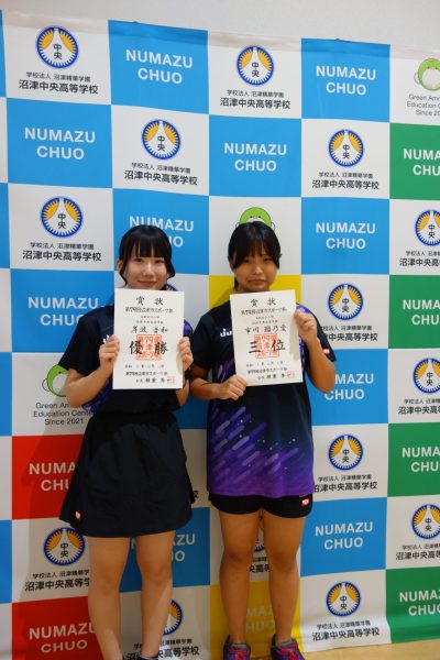 10月11日(土)に沼津市スポーツ祭卓球大会が行われました。高校女子の部では、岸波音和さん(1年・清水中出身)が見事優勝を果たしました。力強いプレーと冷静な試合運びで、堂々の1位に輝きました。また、市川瑠乃愛さん(1年・沼津第三中出身)が第3位に入賞しました。高校男子の部では石橋優真君(1年・裾野西中出身)が落ち着いた試合運びで、第3位に入賞しました。1年生ながらも、日々の練習の成果を発揮し、好成績を収めたことは今後の活躍への期待を大いに高めるものとなりました。高校女子の部で優勝した岸波さんは「高校生になってから大会で初めて優勝することができたので嬉しかったです」と喜びを語ってくれました。今後とも卓球部へのご声援をよろしくお願いいたします。