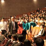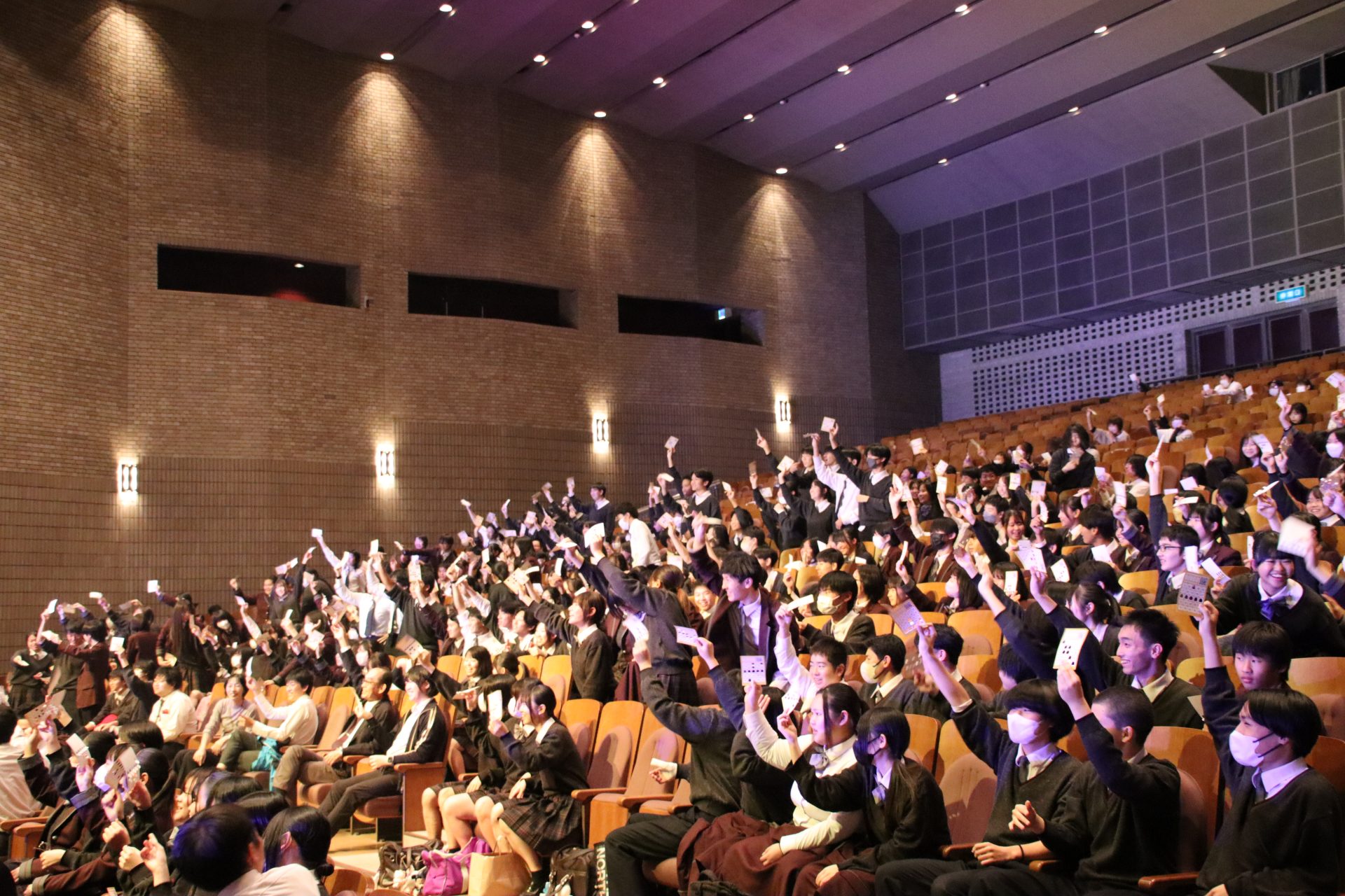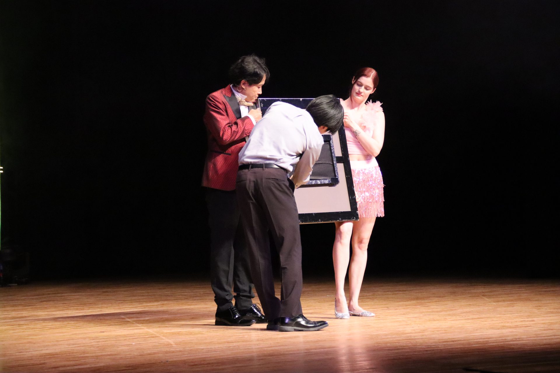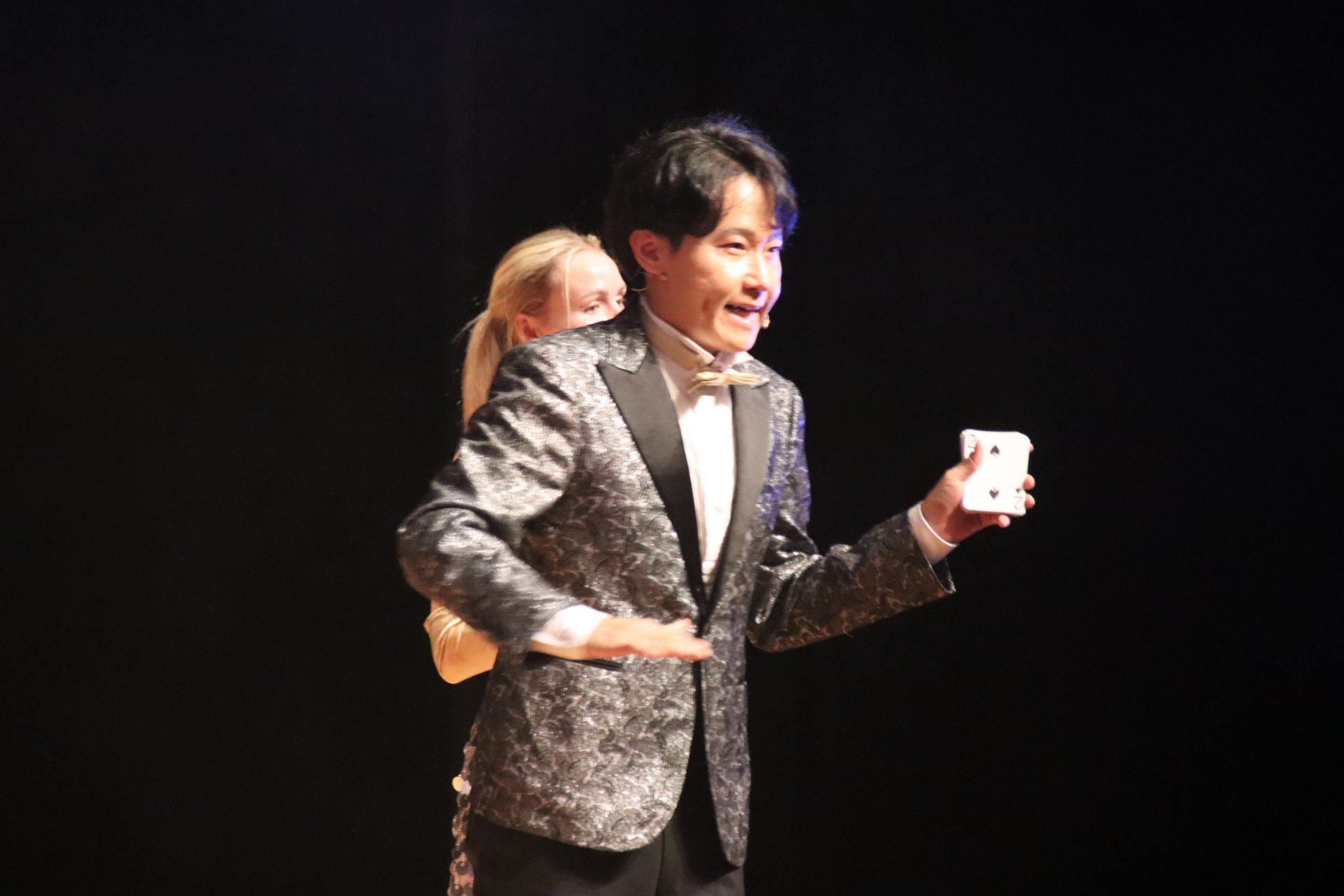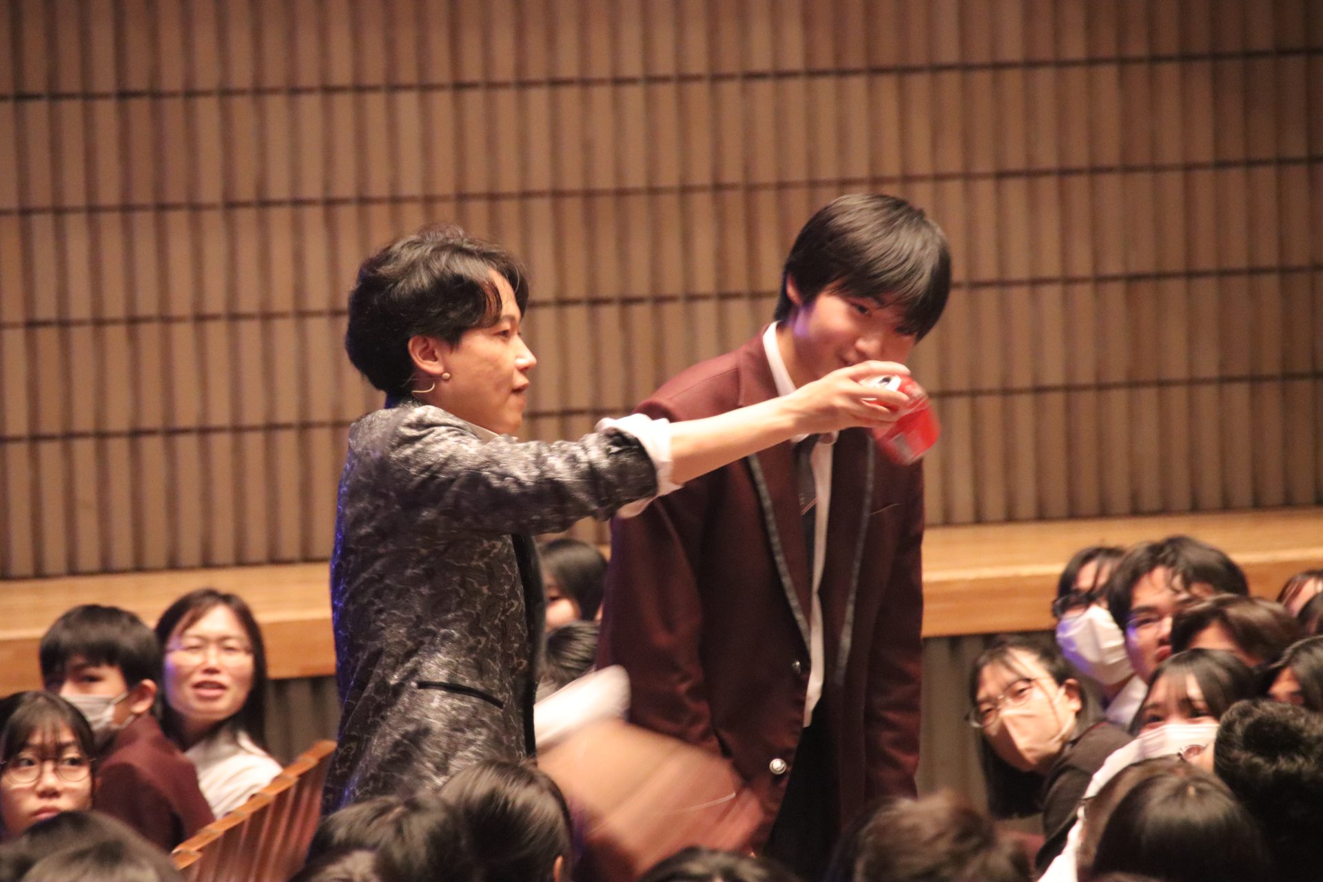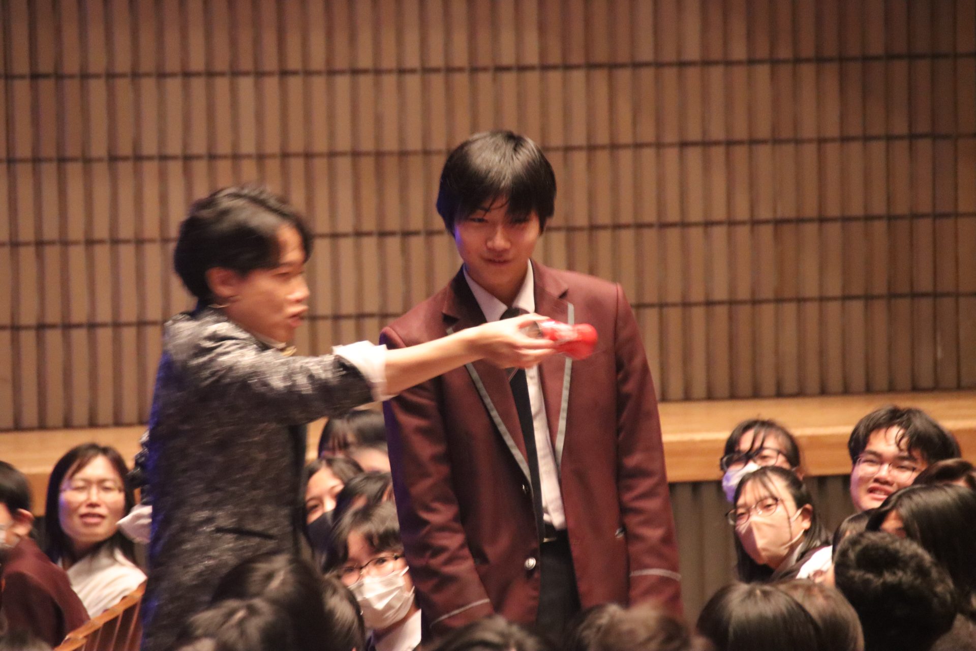 本校の芸術鑑賞会は講演、演劇、音楽を順に鑑賞しており、今年度は10月29日(水)に沼津市民文化センターで、いま最も注目されている若手No.1イリュージョニストDAIKIさんによる新時代の体験型ファンタスティック・イリュージョン・マジックを鑑賞しました。国内外で数々の賞を受賞し、年間300ステージ以上をこなすDAIKIさんのステージは生徒が参加できる体験型のマジックも盛り込まれ、目の前で繰り広げられる奇跡の連続に、会場の生徒たちは驚きと歓喜の声を上げました。次々と展開されるダイナミックで洗練されたイリュージョンに魅了されっぱなしの90分でした。生徒会長の村山悠晴君(長泉中出身)は「驚きと感動の連続でした。目の前で起こっていることなのに、仕組みが全く分からない。DAIKIさんの世界観に引き込まれ、非日常の体験ができました。この集中力や創造性を、自分たちの学校生活にも活かしていきたいです」と感想を述べてくれました。一流の芸術に触れることで、感性を刺激されるとともに、創造力や探求心を深める貴重な一日となりました。