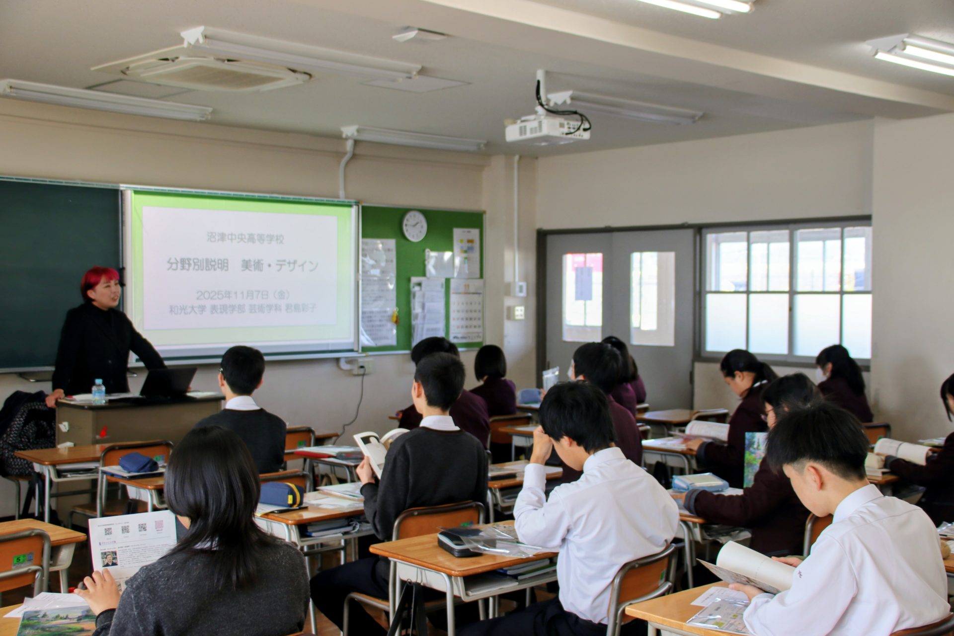 11月7日(金)、1年生を対象に校内で「進路ガイダンス」が行われました。このガイダンスでは、生徒一人ひとりが自分の興味・関心に応じて、大学や専門学校、各分野のブースを選択し、説明を受けました。各ブースでは、学校の特色や学部・学科の内容だけでなく、その先に広がる職業や社会とのつながりについても具体的なお話があり、生徒たちは普段の授業とは違った緊張感を持って真剣に耳を傾けていました。高校入学から半年が経ち、学校生活にも慣れてきた時期ではありますが、卒業後の進路についてはまだ漠然としている生徒も多い中、今回のガイダンスは「自分の未来」について考えるきっかけとなりました。早い段階から情報を集め、実際に上級学校の方々から直接話を聞くことで、進路選択に対する意識が少しずつ芽生えてきたようです。今回は、単なる学部・学科の紹介にとどまらず、「その学びがどのような職業につながるのか」「どんな力が社会で求められているのか」といった、職業観を含めた内容で構成されており、生徒たちにとって非常に有意義な時間となりました。ガイダンス後には、「進路実現に向けて準備を始めよう」「家族と進路について話し合ってみよう」といった前向きな声も聞かれ、進路への意識が高まっている様子がうかがえました。