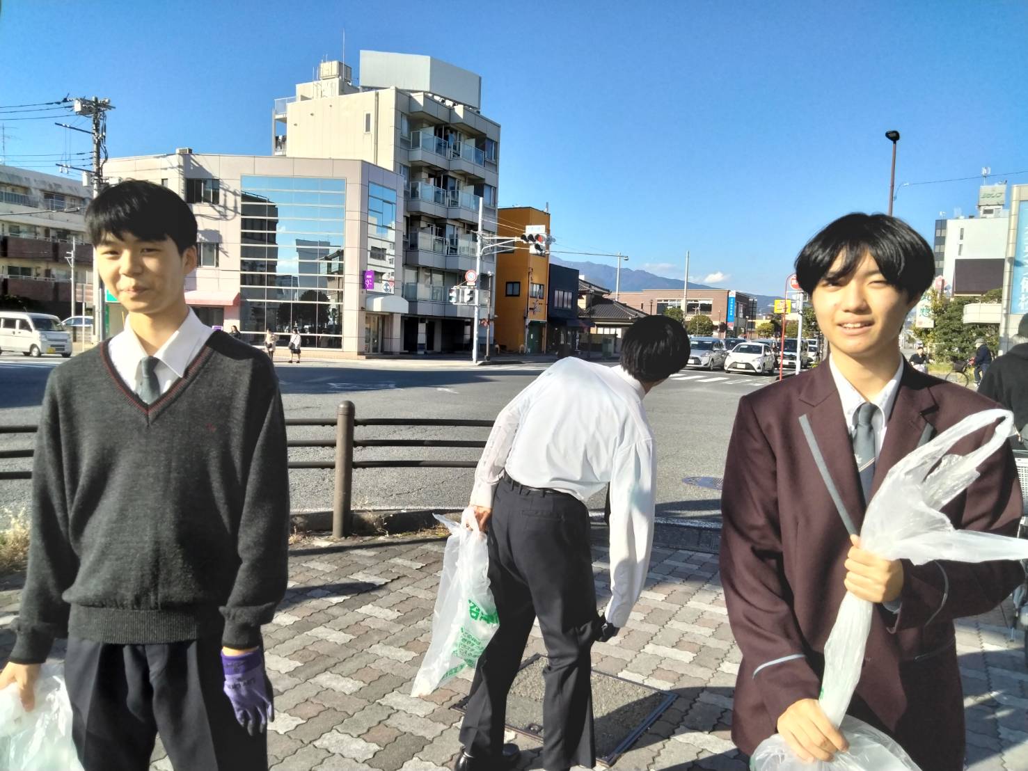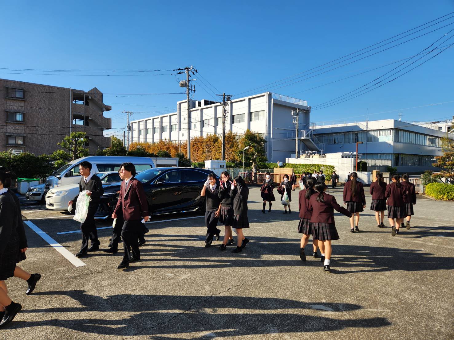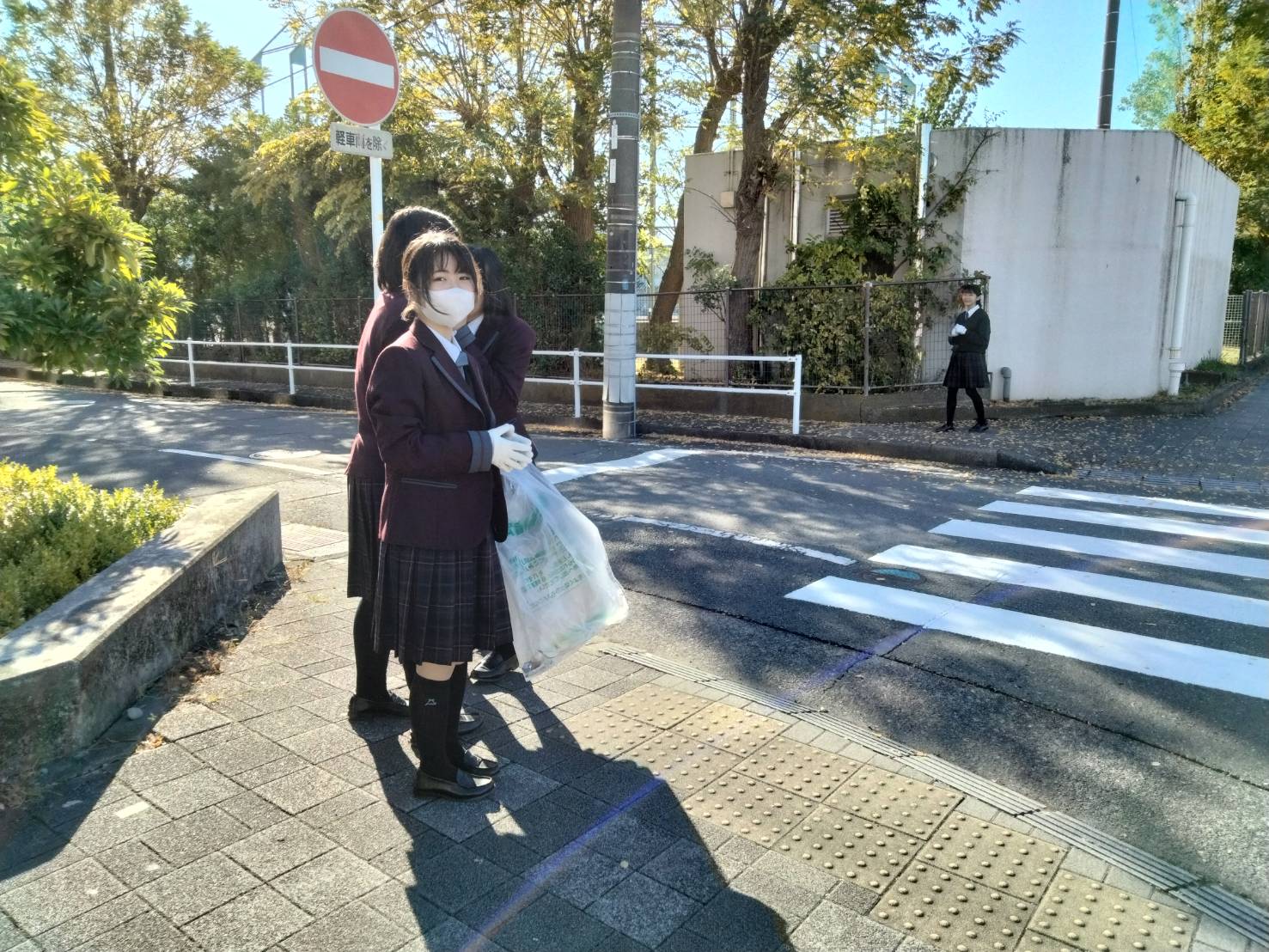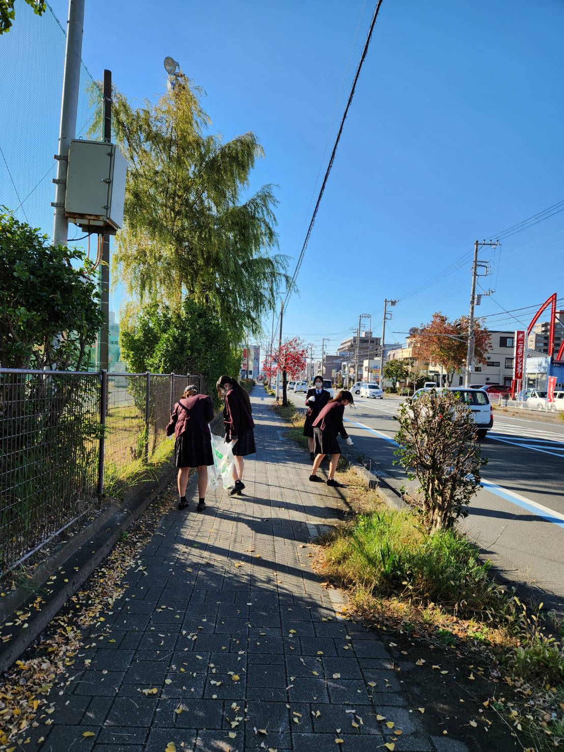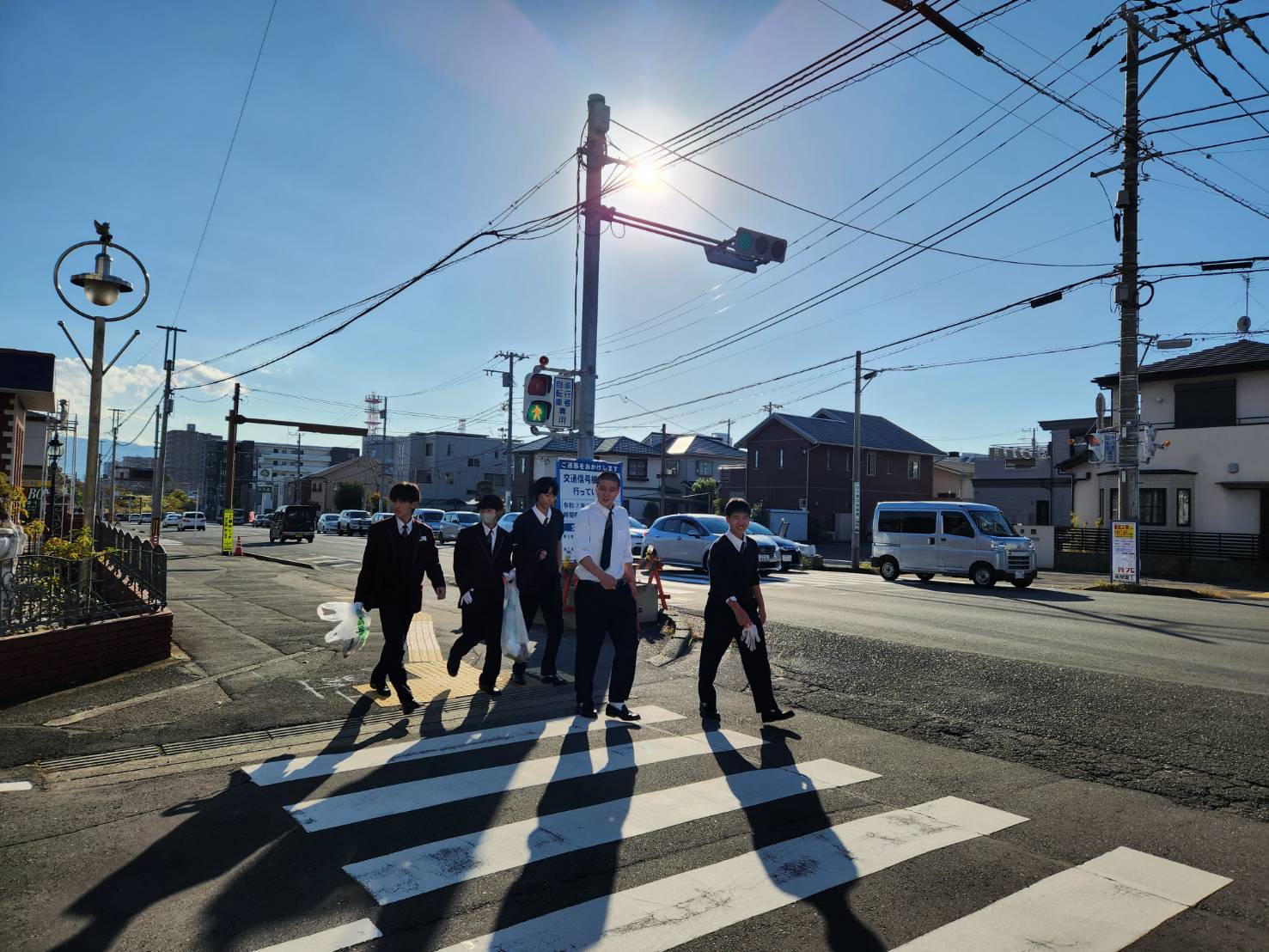 11月14日(金)に1年生が校外奉仕活動を行いました。この活動は、マナー学習の一環として企画されたもので、生徒たちは本校周辺から沼津駅までの区間を重点的に清掃しました。通学路や駅周辺は多くの人が利用する場所であり、きれいな環境を保つことは地域の方々にとっても大切なことです。生徒たちは軍手やごみ袋を手に、落ち葉や吸い殻などを拾いながら、協力して作業を進めました。途中、地域住民の方から「ありがとう」と声をかけてもらう場面もあり、活動の意義を実感できたのではないでしょうか。勝亦惺也君(函南東中出身)は「今回の取り組みを通じて、地域に貢献する喜びや公共の場を大切にする心を学ぶことができました。また、仲間と協力しながら活動することで、仲間との絆も深まり、充実した時間となりました」と話してくれました。こうした奉仕活動は、生活環境の向上だけでなく、生徒自身の成長にもつながる大切な学びです。今後も学校では、地域とのつながりを大切にしながら、社会に貢献できる人材の育成を目指していきます。