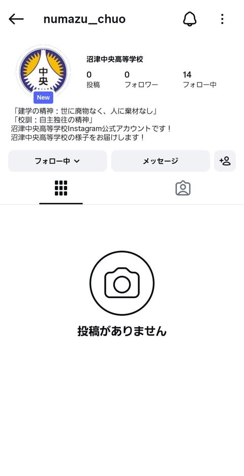 この度、沼津中央高等学校の公式Instagramアカウントを装った偽アカウントの存在が確認されました。偽アカウントは、プロフィール画像が公式アカウントと酷似していますが、本校とは一切関係ありません。