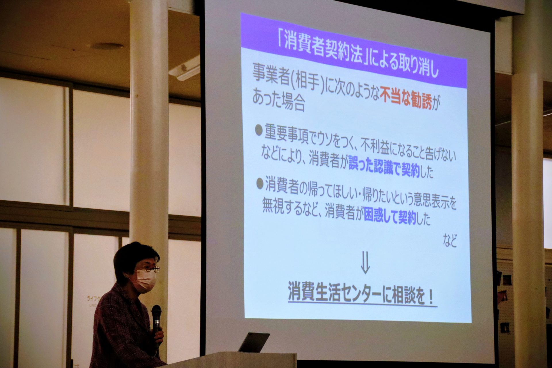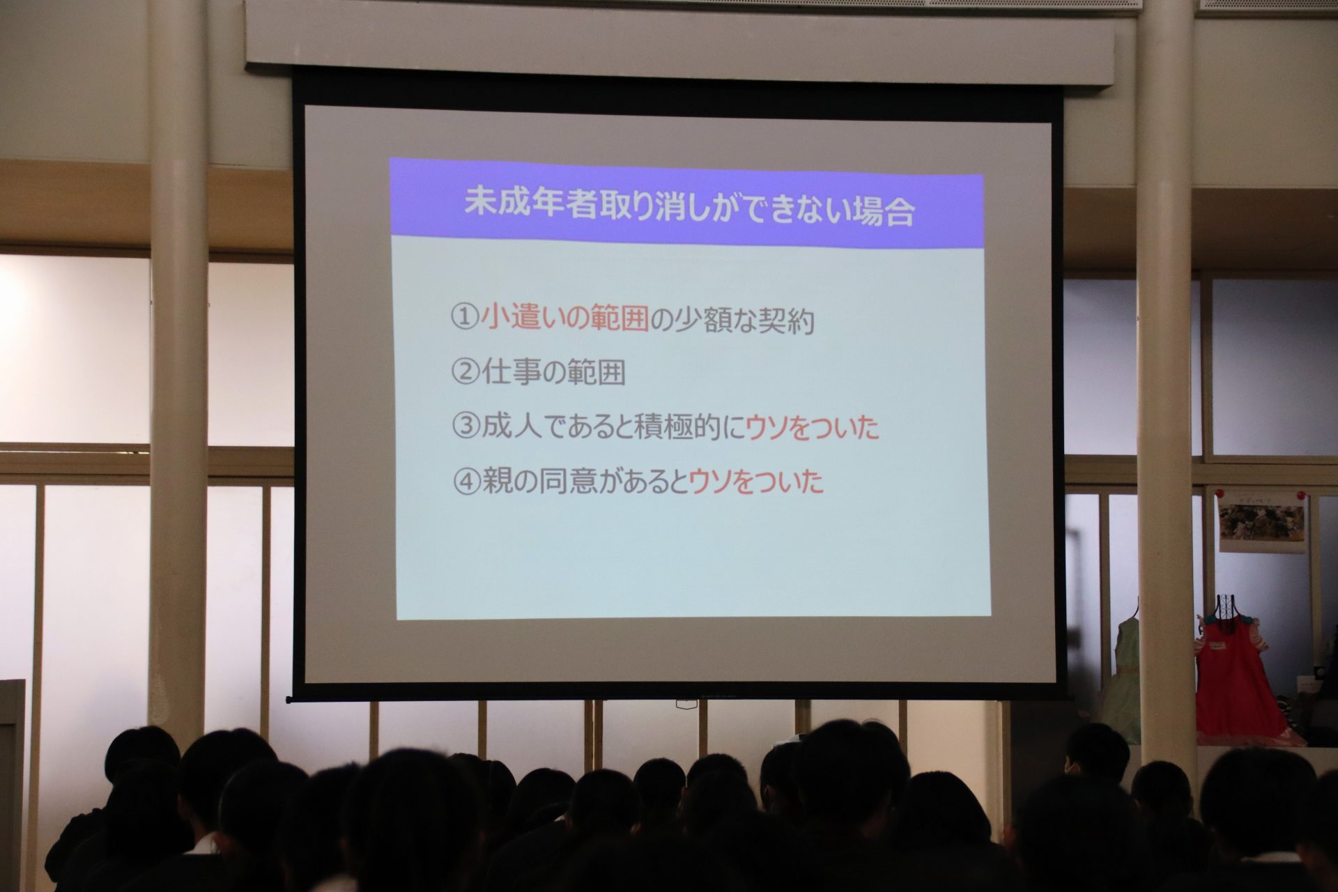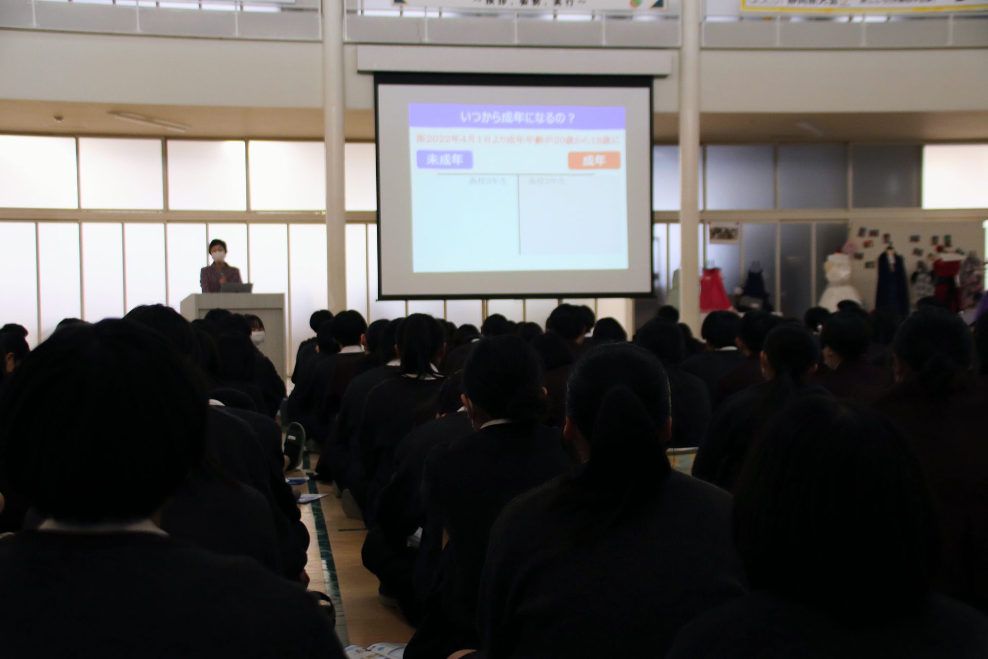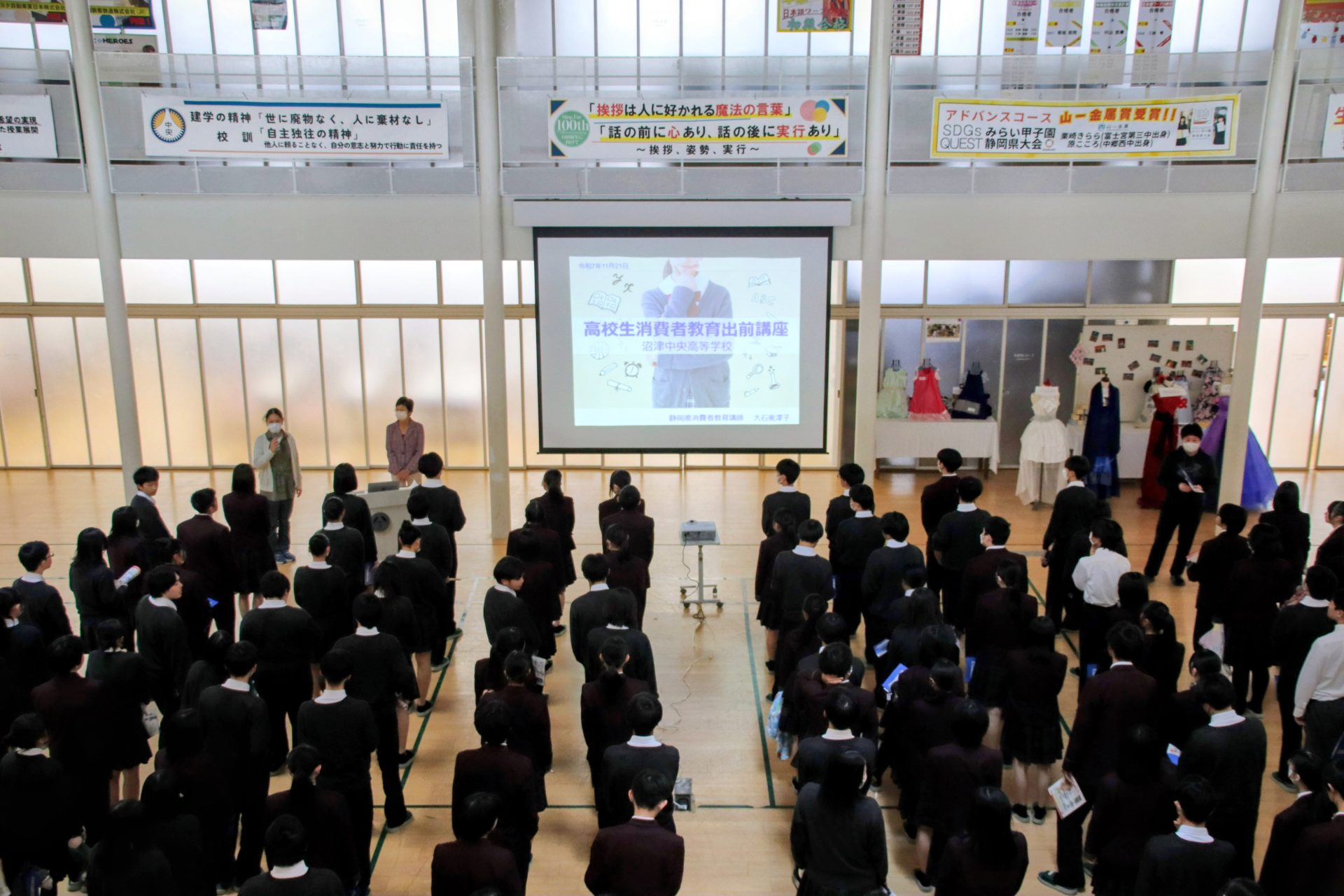11月21日(金)、1年生を対象に消費者教育を実施しました。近年、成年年齢が18歳に引き下げられたことにより、民法の未成年者取消権による保護が適用されなくなり、高校生が悪質業者による消費者被害に遭うリスクが高まっています。こうした背景を踏まえ、今回の講座では「成年を迎える前に知っておくべき消費生活の基礎知識」をテーマに、契約の仕組みや注意点、トラブルを防ぐための心構えなどを学びました。講師の方からは、実際に起こりやすい事例や、被害に遭った場合の対応方法について具体的な説明があり、生徒たちは真剣な表情で耳を傾けていました。「ネット通販やSNSでの取引」「スマホ決済」など、身近な場面で起こり得る問題を取り上げることで、生徒たちにとって実生活に直結する内容となりました。今回の学びを通じて、生徒たちは「契約は慎重に」「困ったときは相談する」という意識を高めることができました。本校では、こうした消費者教育を通じて、生徒が社会で自立し、安全に生活できる力を育んでいきます。