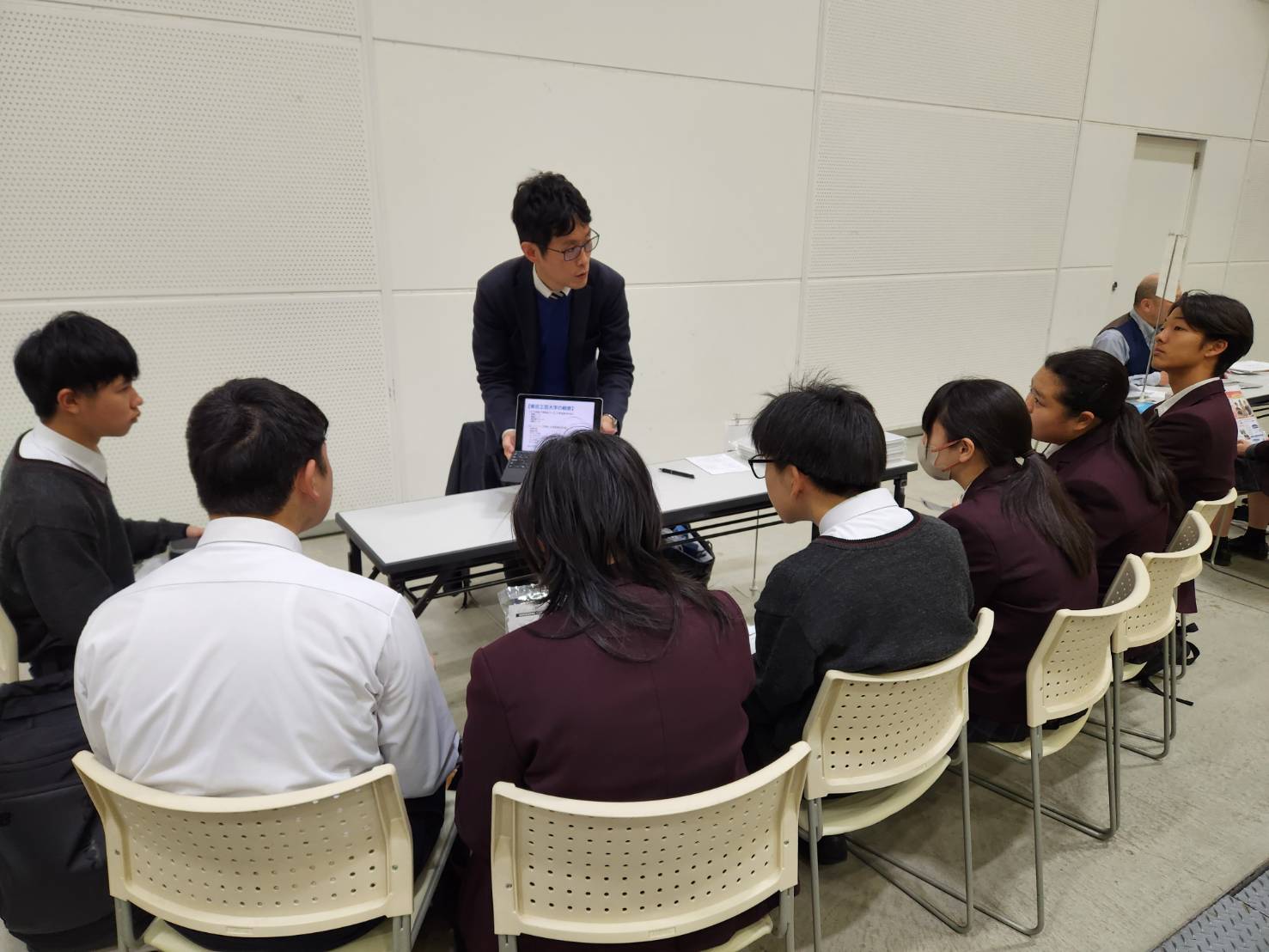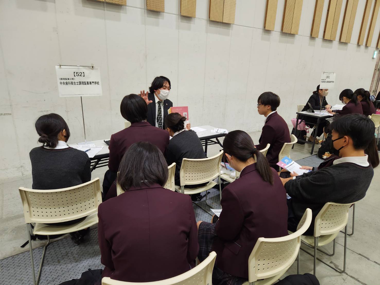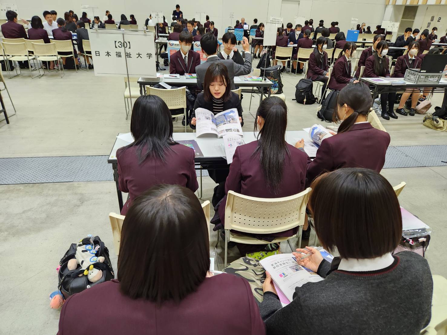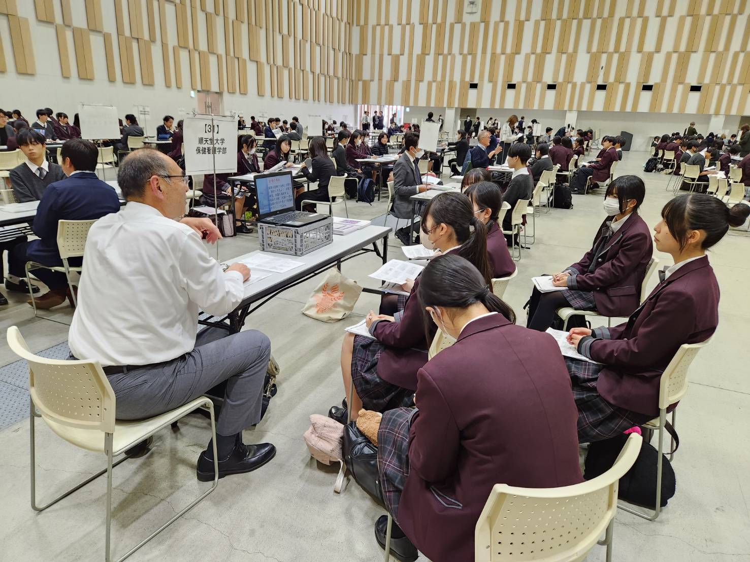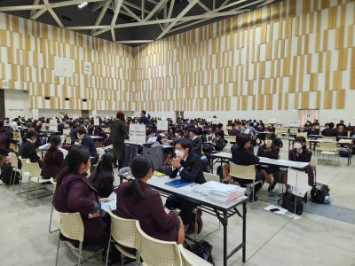 11月28日(金)、1,2年生がプラサヴェルデで行われた進路ガイダンスに参加しました。この進学相談会は、本校生徒のために約80校以上の大学・短期大学・専門学校が一堂に集まり、各校の担当者から直接説明を受けることができる貴重な機会です。生徒たちは、自分の興味や将来の目標に合わせてブースを選び、学部・学科の特徴や入試制度、学校生活の様子など、具体的な情報を熱心に聞いていました。高校生活の中で進路を考えることは簡単ではありませんが、こうした機会を通じて「自分の適性は何か」「どんな学びが将来につながるのか」を考えるきっかけとなります。また、直接質問できることで、パンフレットやインターネットだけでは得られないリアルな情報を知ることができ、進路意識の向上につながりました。