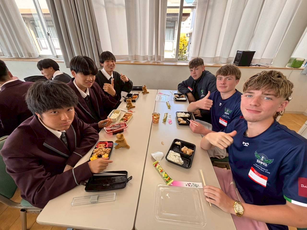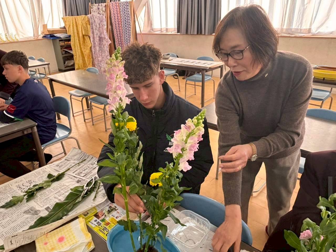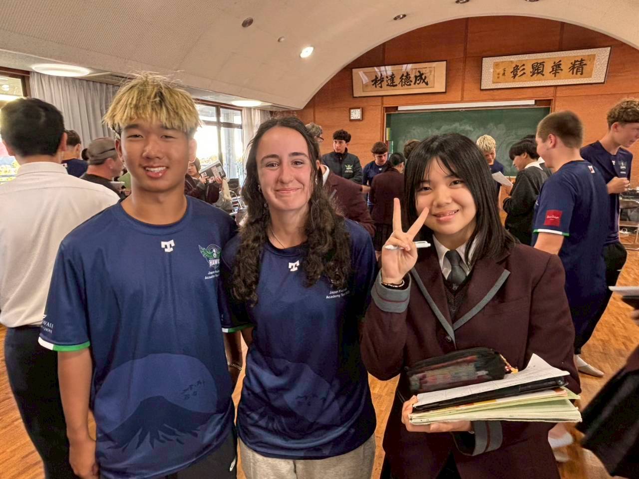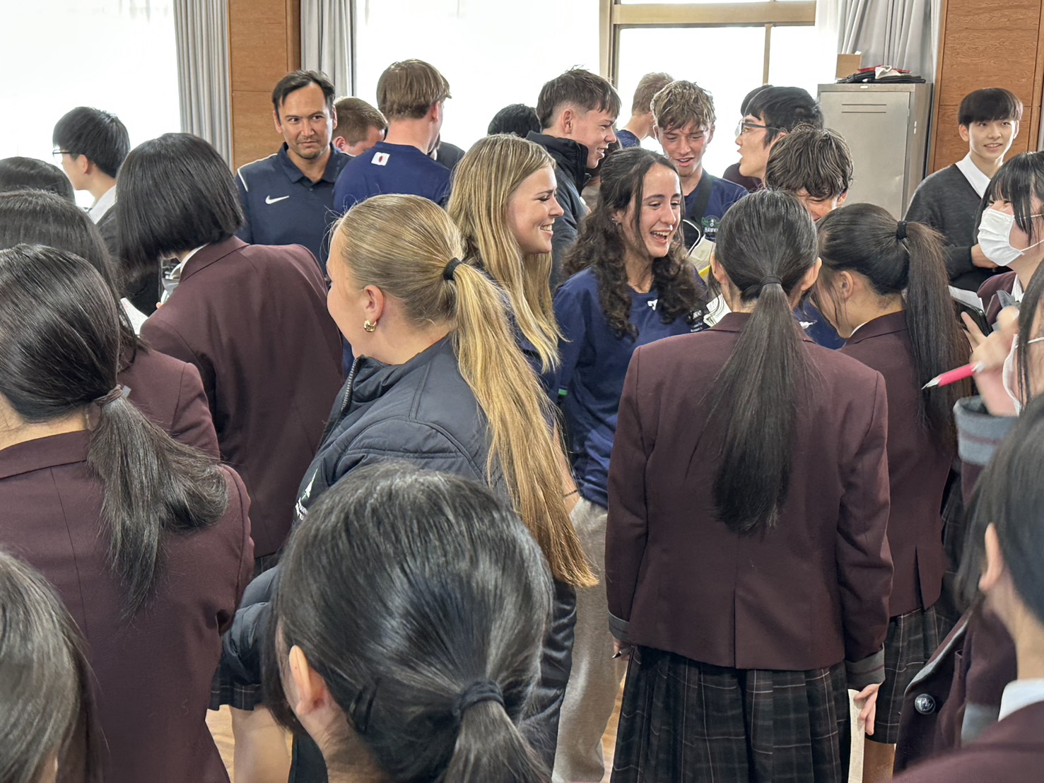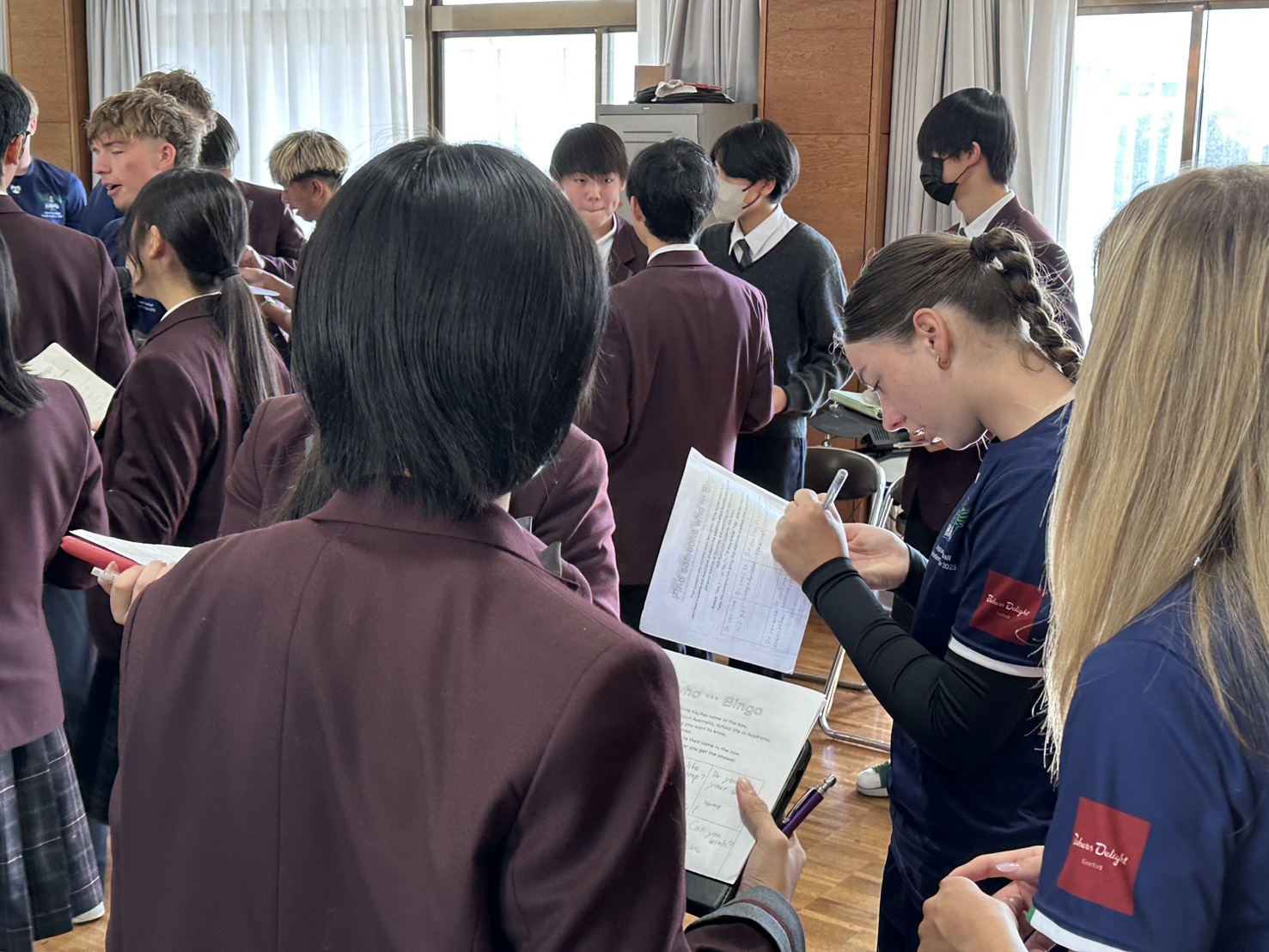 コロナ禍以降、初めての国際交流はオーストラリアの学校とのサッカー交流となりました。今回の交流は、6年前にも同じマネジメント会社を通じて行った国際交流の再開となりました。まず、12月5日(金)の夕方にPalm Beach高校のU16サッカーチームと時之栖裾野グラウンドで交流試合を行いました。気温4℃という寒さの中、両校の選手たちは全力でプレーし、試合後にはユニフォームやギフトを交換して親睦を深めました。翌週の12月8日(月)には、Helensvale State High Schoolの生徒が昼前から本校を訪れ、4限目の授業から放課後の部活動体験まで、さまざまな活動を通じて本校生徒と交流しました。多くの生徒がオーストラリアの高校生からプレゼントを受け取り、笑顔があふれる時間となりました。放課後の部活動では、吹奏楽部、茶道部、華道部、大正琴同好会の生徒たちが、オーストラリアの高校生らを温かく迎え、日本文化の体験をサポートしました。吹奏楽部による演奏体験では、楽器の音色や演奏方法を紹介し、音楽を通じた交流が生まれました。茶道部と華道部では、日本ならではの「おもてなしの心」を感じられる体験を提供し、茶を点てる所作や花を生ける美しさに、オーストラリアの生徒たちは興味津々の様子でした。さらに、大正琴同好会では、伝統楽器の音色に触れながら、実際に弾いてみる体験も行われ、笑顔と驚きがあふれる時間となりました。こうした文化交流を通じて、言葉の壁を越えたコミュニケーションが生まれ、生徒たちにとっても貴重な国際交流の機会となりました。12月9日(火)には、前日に交流したHelensvale高校のU16サッカーチームと裾野グラウンドで試合を行いました。顔見知りになったことで、試合後の交流はより楽しく、互いに名前入りのウェアを交換しながら別れを惜しむ姿が見られました。今回の交流を通じて、「もっと英語を話せたら、もっと仲良くなれたのに」という前向きな気持ちが本校生徒に芽生えました。この経験を、今後の英語学習への意欲につなげてほしいと思います。