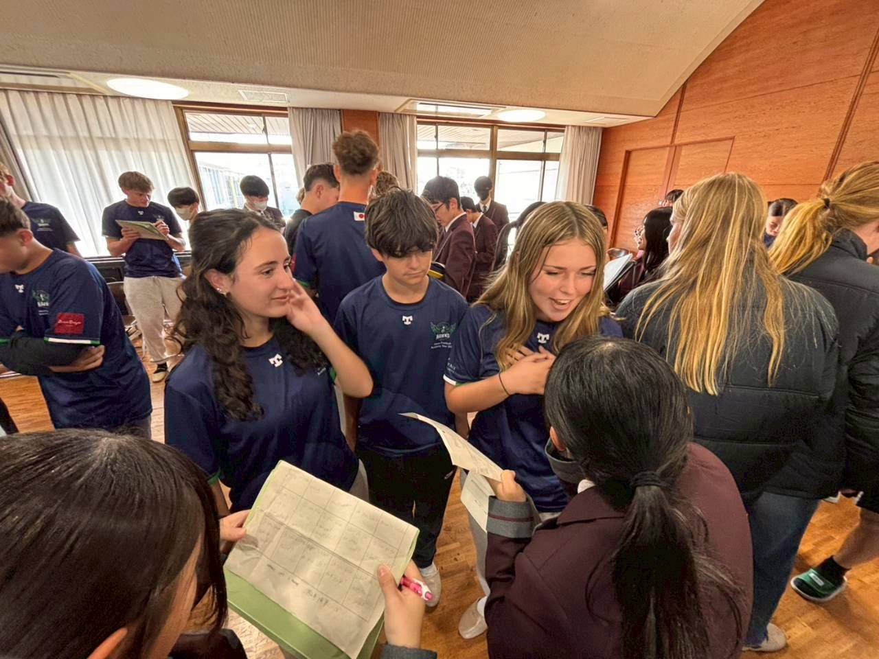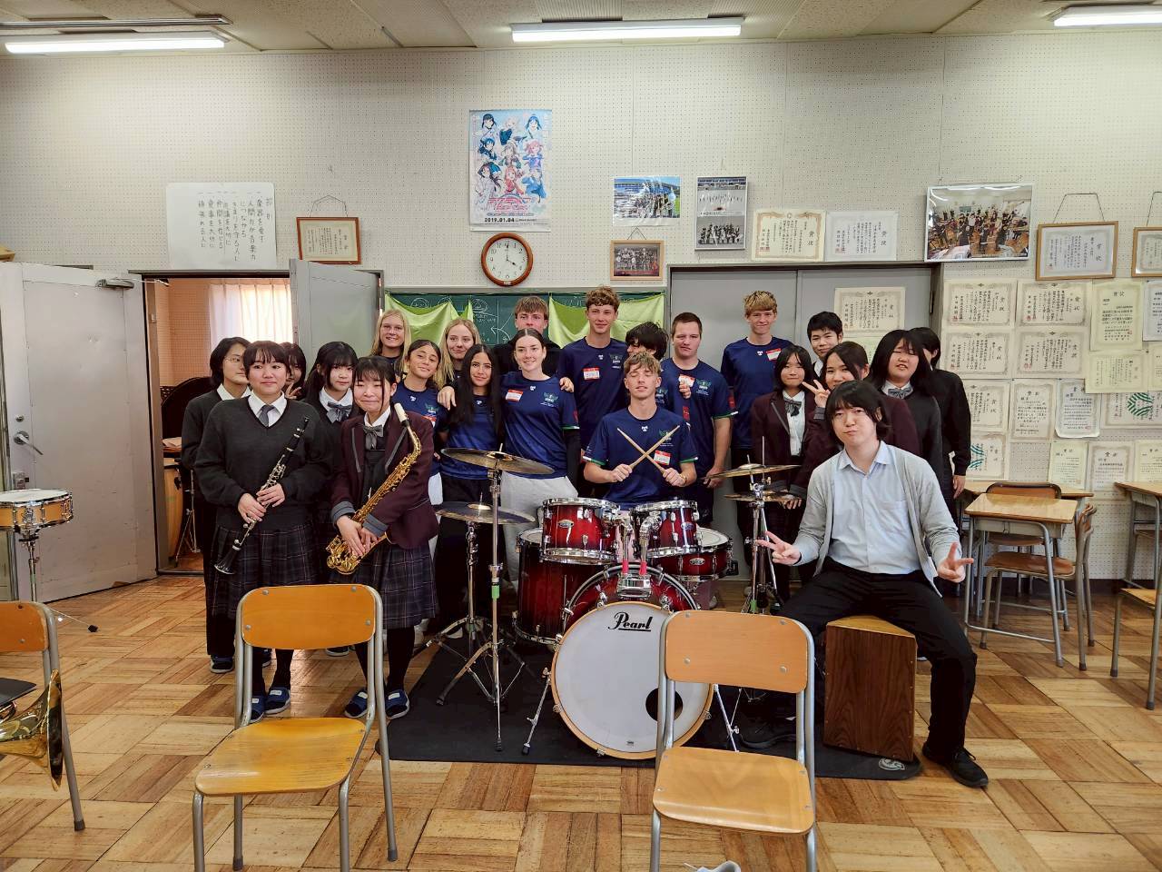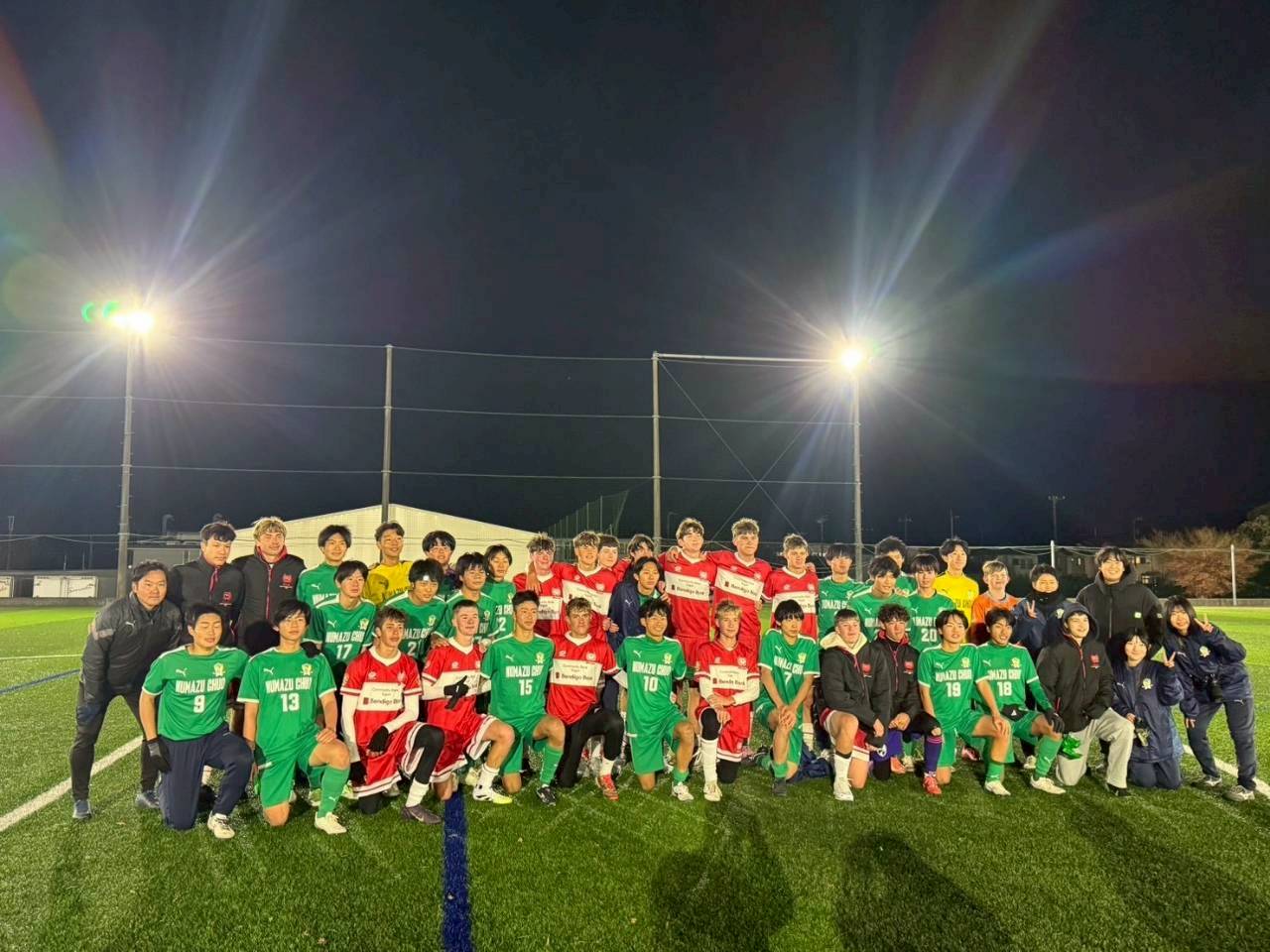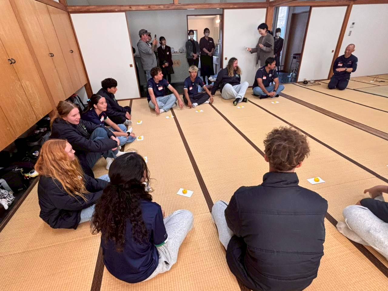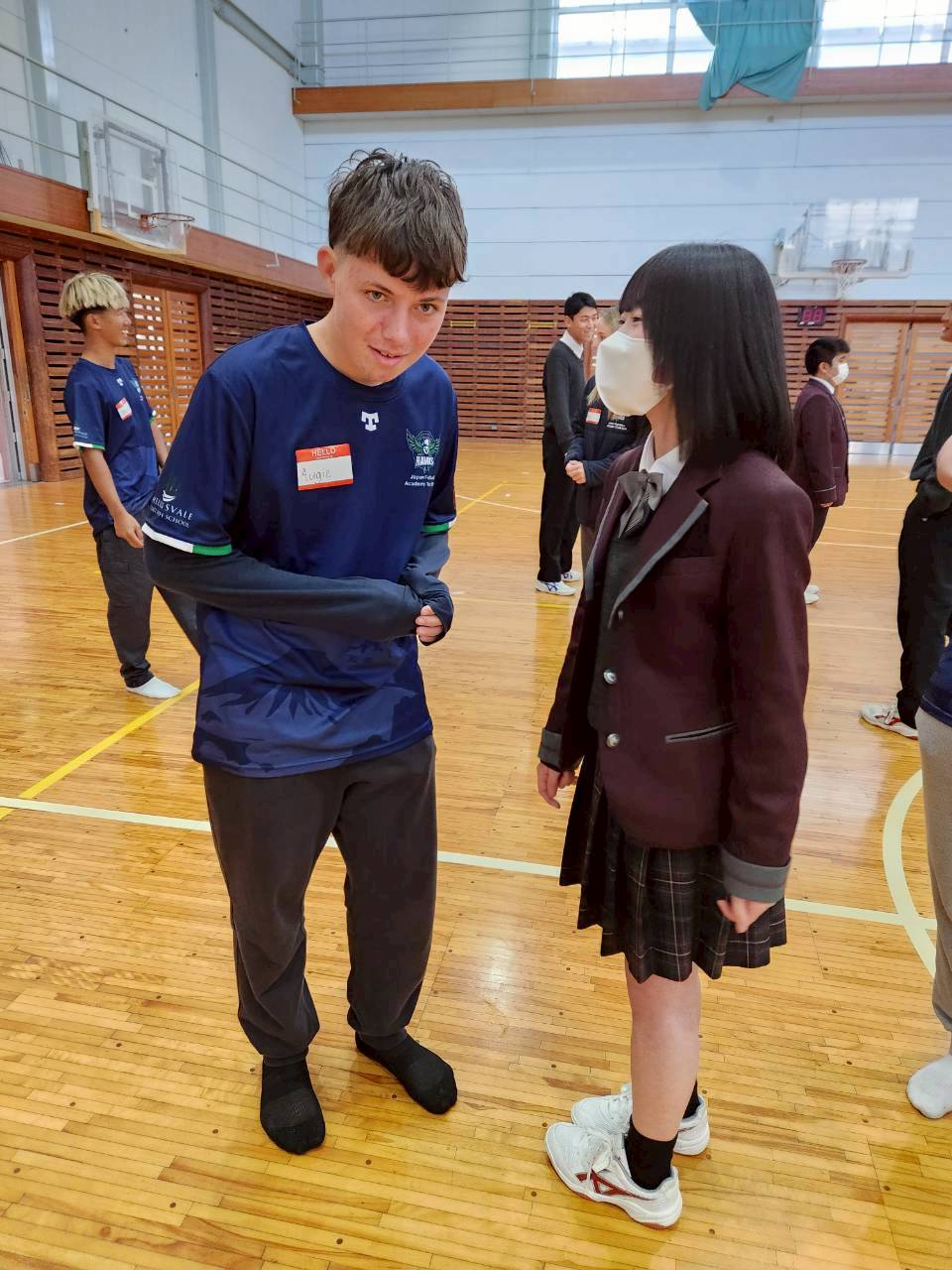 コロナ禍以降、初めての国際交流はオーストラリアの学校とのサッカー交流となりました。今回の交流は、6年前にも同じマネジメント会社を通じて行った国際交流の再開となりました。まず、12月5日(金)の夕方にPalm Beach高校のU16サッカーチームと時之栖裾野グラウンドで交流試合を行いました。気温4℃という寒さの中、両校の選手たちは全力でプレーし、試合後にはユニフォームやギフトを交換して親睦を深めました。翌週の12月8日(月)には、Helensvale State High Schoolの生徒が昼前から本校を訪れ、4限目の授業から放課後の部活動体験まで、さまざまな活動を通じて本校生徒と交流しました。多くの生徒がオーストラリアの高校生からプレゼントを受け取り、笑顔があふれる時間となりました。放課後の部活動では、吹奏楽部、茶道部、華道部、大正琴同好会の生徒たちが、オーストラリアの高校生らを温かく迎え、日本文化の体験をサポートしました。吹奏楽部による演奏体験では、楽器の音色や演奏方法を紹介し、音楽を通じた交流が生まれました。茶道部と華道部では、日本ならではの「おもてなしの心」を感じられる体験を提供し、茶を点てる所作や花を生ける美しさに、オーストラリアの生徒たちは興味津々の様子でした。さらに、大正琴同好会では、伝統楽器の音色に触れながら、実際に弾いてみる体験も行われ、笑顔と驚きがあふれる時間となりました。こうした文化交流を通じて、言葉の壁を越えたコミュニケーションが生まれ、生徒たちにとっても貴重な国際交流の機会となりました。12月9日(火)には、前日に交流したHelensvale高校のU16サッカーチームと裾野グラウンドで試合を行いました。顔見知りになったことで、試合後の交流はより楽しく、互いに名前入りのウェアを交換しながら別れを惜しむ姿が見られました。今回の交流を通じて、「もっと英語を話せたら、もっと仲良くなれたのに」という前向きな気持ちが本校生徒に芽生えました。この経験を、今後の英語学習への意欲につなげてほしいと思います。