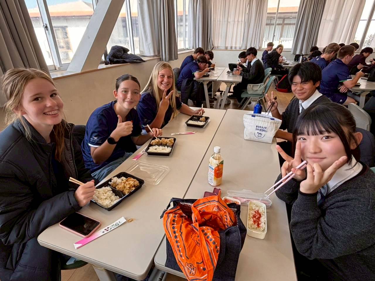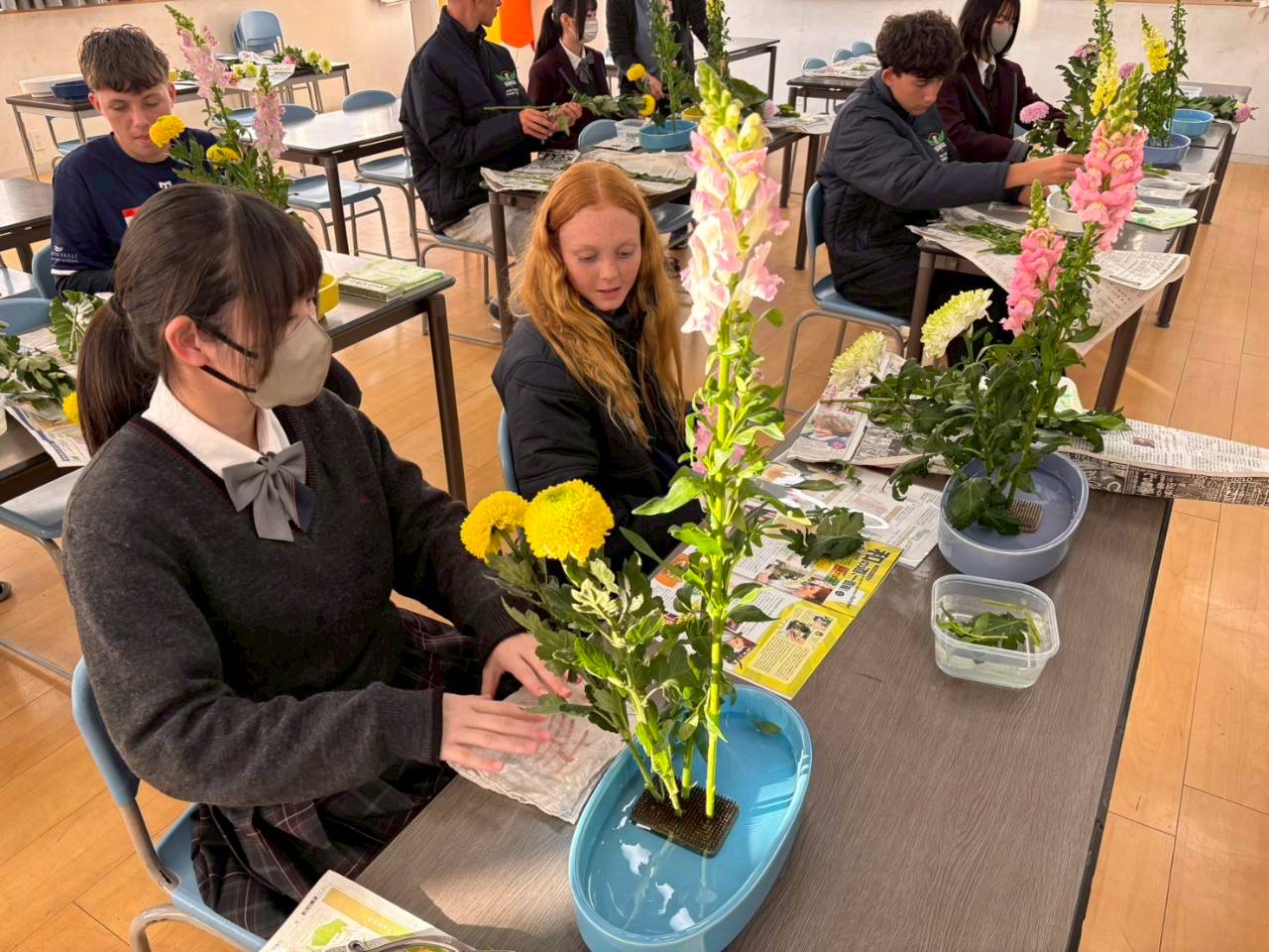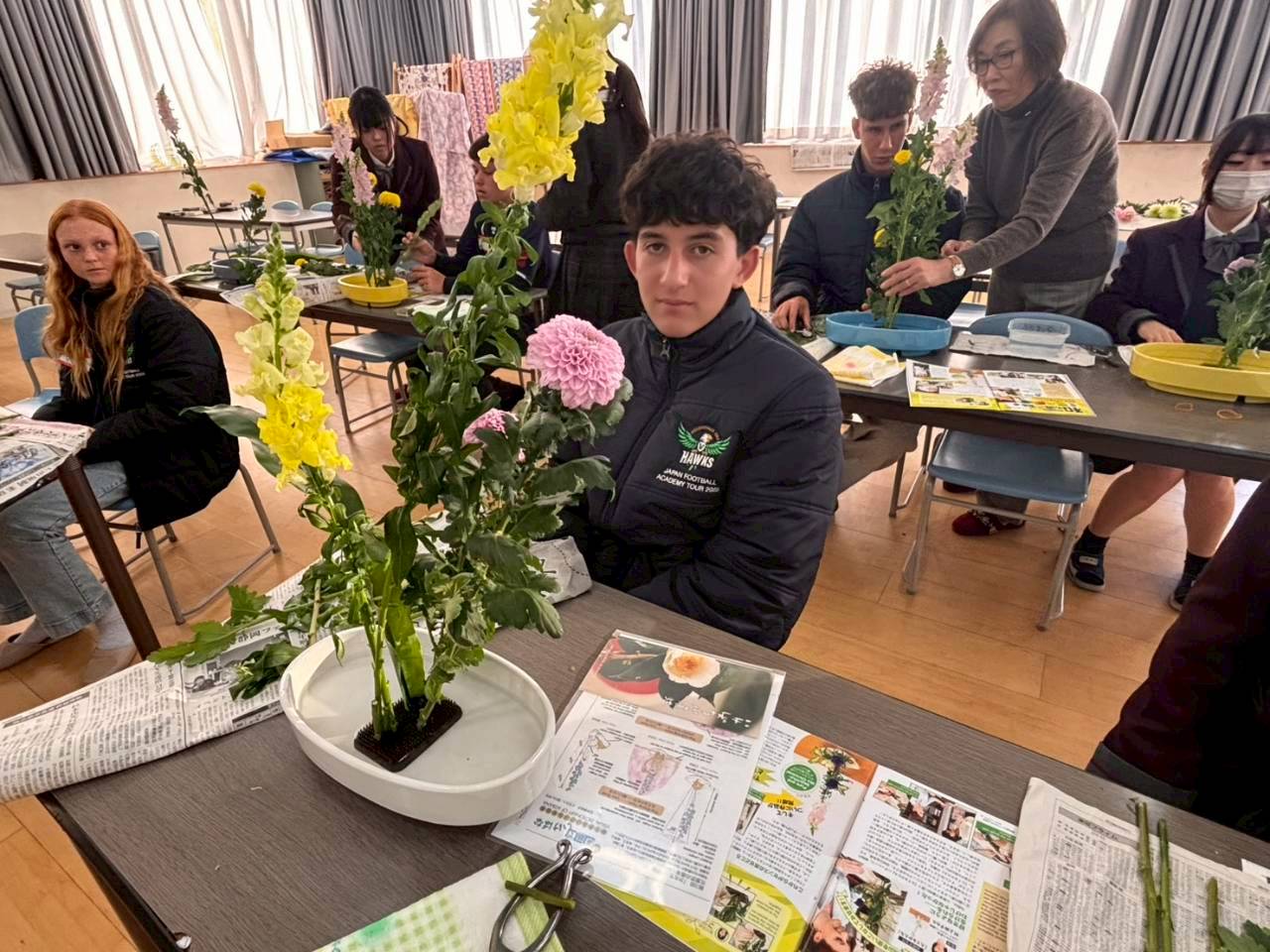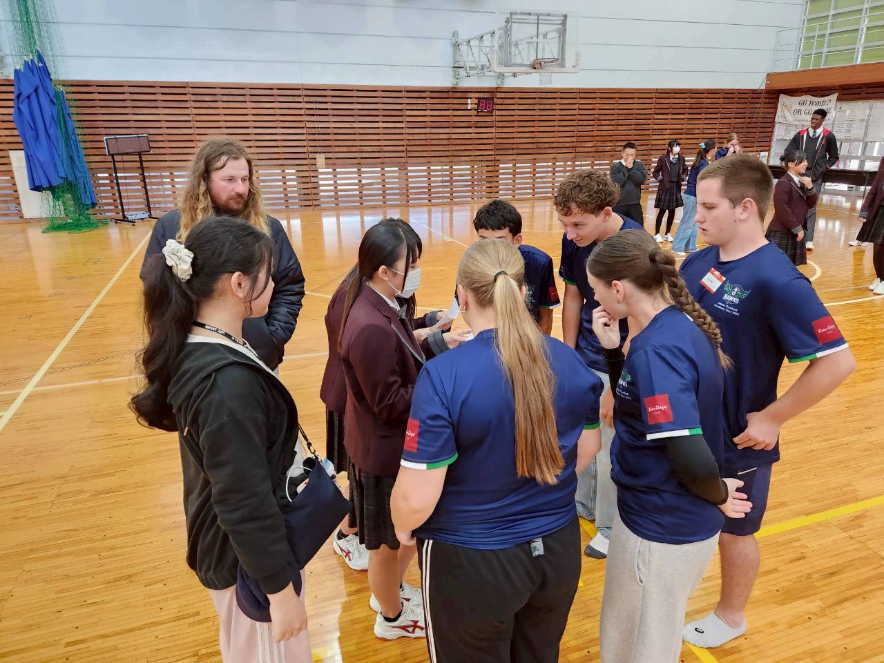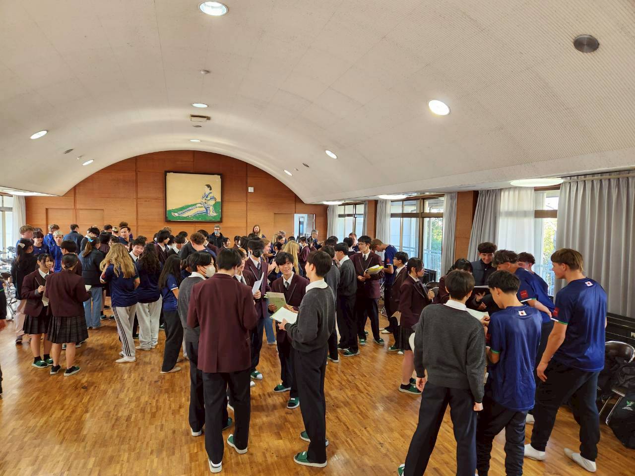 コロナ禍以降、初めての国際交流はオーストラリアの学校とのサッカー交流となりました。今回の交流は、6年前にも同じマネジメント会社を通じて行った国際交流の再開となりました。まず、12月5日(金)の夕方にPalm Beach高校のU16サッカーチームと時之栖裾野グラウンドで交流試合を行いました。気温4℃という寒さの中、両校の選手たちは全力でプレーし、試合後にはユニフォームやギフトを交換して親睦を深めました。翌週の12月8日(月)には、Helensvale State High Schoolの生徒が昼前から本校を訪れ、4限目の授業から放課後の部活動体験まで、さまざまな活動を通じて本校生徒と交流しました。多くの生徒がオーストラリアの高校生からプレゼントを受け取り、笑顔があふれる時間となりました。放課後の部活動では、吹奏楽部、茶道部、華道部、大正琴同好会の生徒たちが、オーストラリアの高校生らを温かく迎え、日本文化の体験をサポートしました。吹奏楽部による演奏体験では、楽器の音色や演奏方法を紹介し、音楽を通じた交流が生まれました。茶道部と華道部では、日本ならではの「おもてなしの心」を感じられる体験を提供し、茶を点てる所作や花を生ける美しさに、オーストラリアの生徒たちは興味津々の様子でした。さらに、大正琴同好会では、伝統楽器の音色に触れながら、実際に弾いてみる体験も行われ、笑顔と驚きがあふれる時間となりました。こうした文化交流を通じて、言葉の壁を越えたコミュニケーションが生まれ、生徒たちにとっても貴重な国際交流の機会となりました。12月9日(火)には、前日に交流したHelensvale高校のU16サッカーチームと裾野グラウンドで試合を行いました。顔見知りになったことで、試合後の交流はより楽しく、互いに名前入りのウェアを交換しながら別れを惜しむ姿が見られました。今回の交流を通じて、「もっと英語を話せたら、もっと仲良くなれたのに」という前向きな気持ちが本校生徒に芽生えました。この経験を、今後の英語学習への意欲につなげてほしいと思います。
