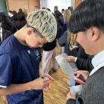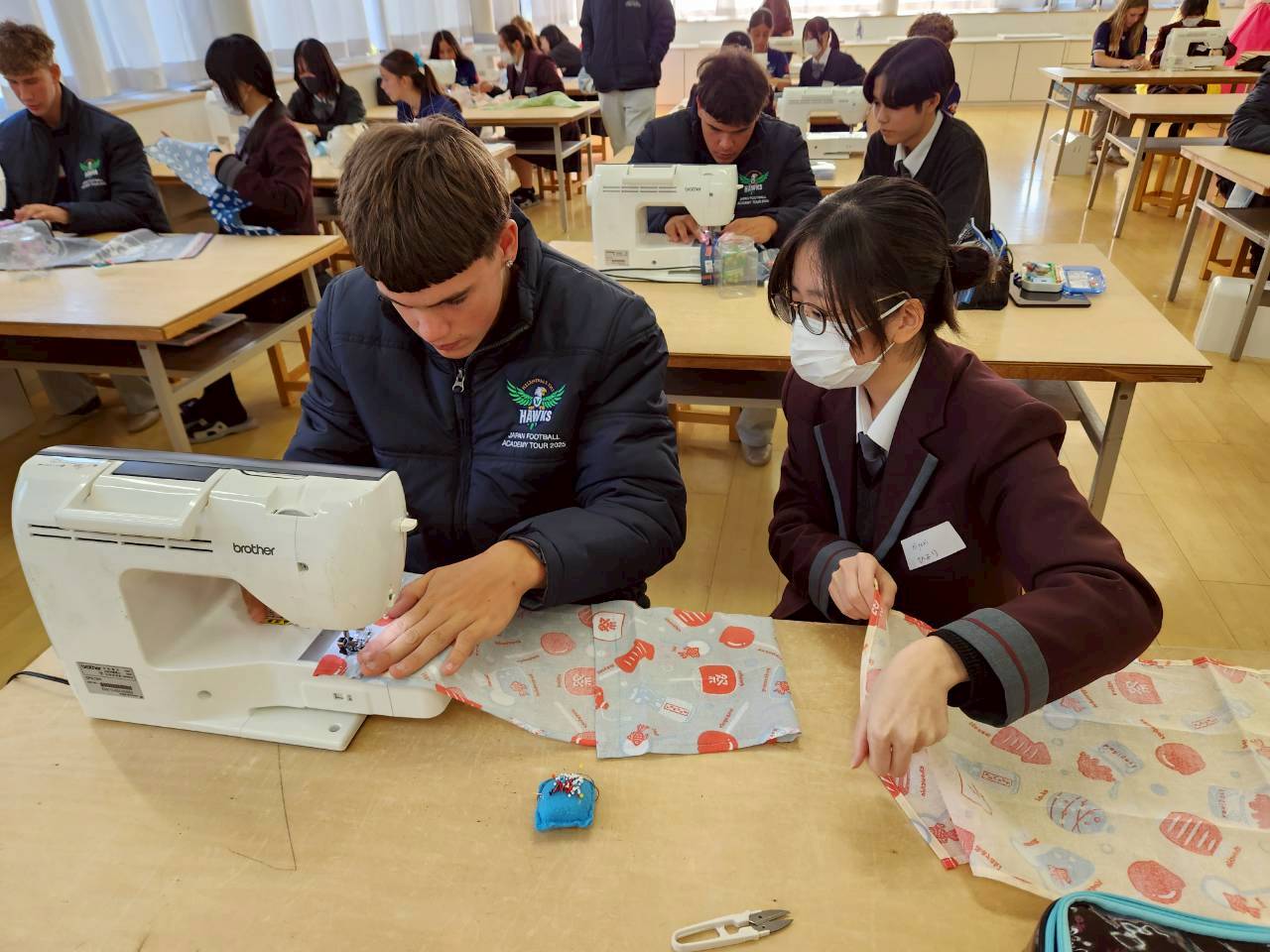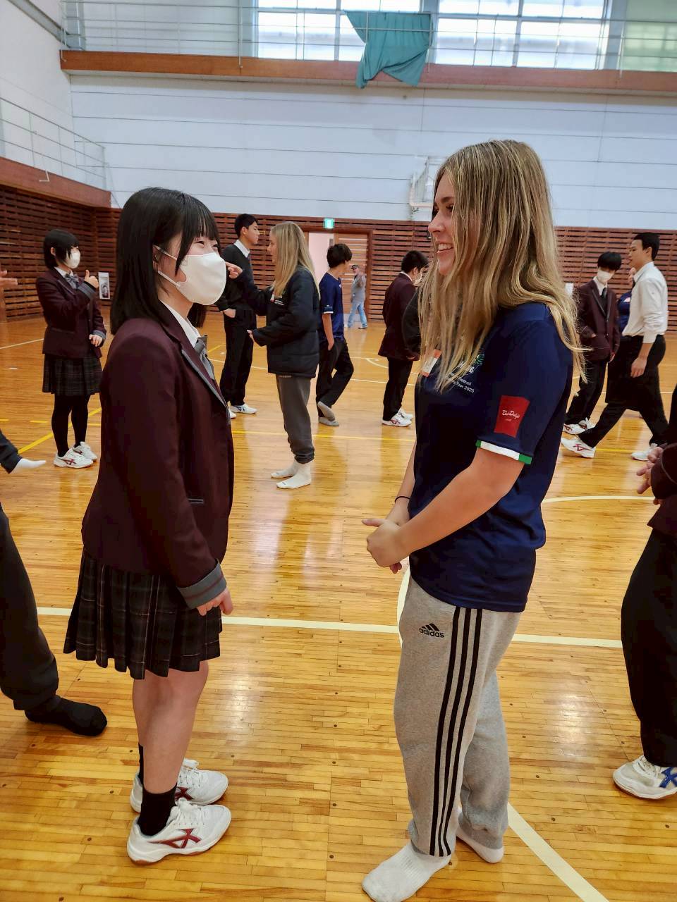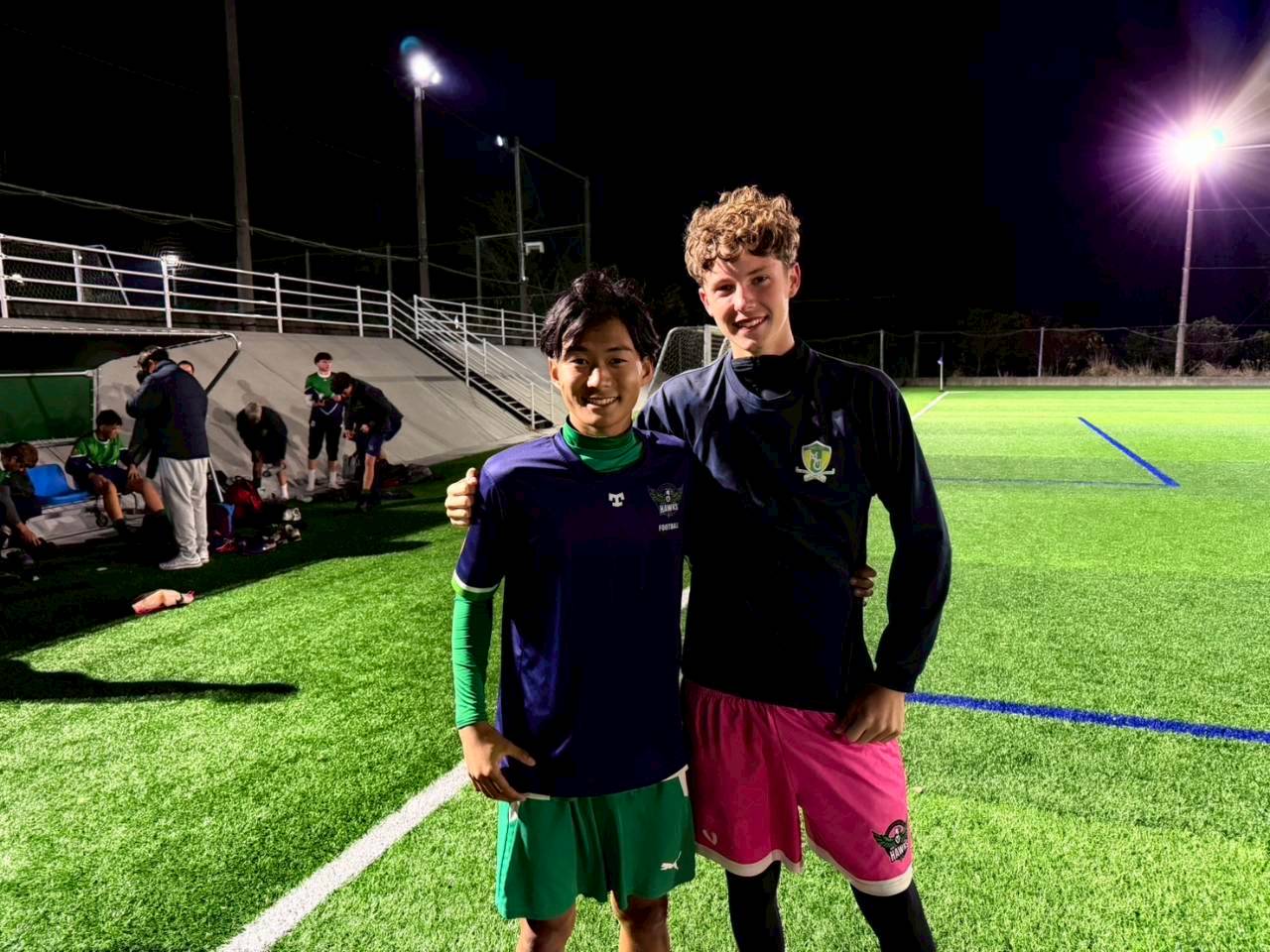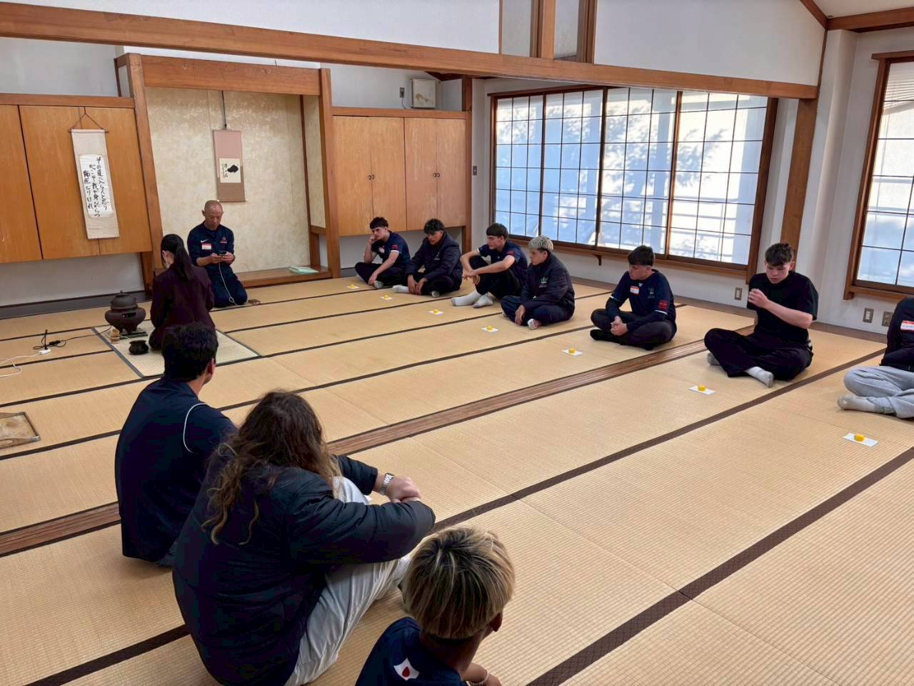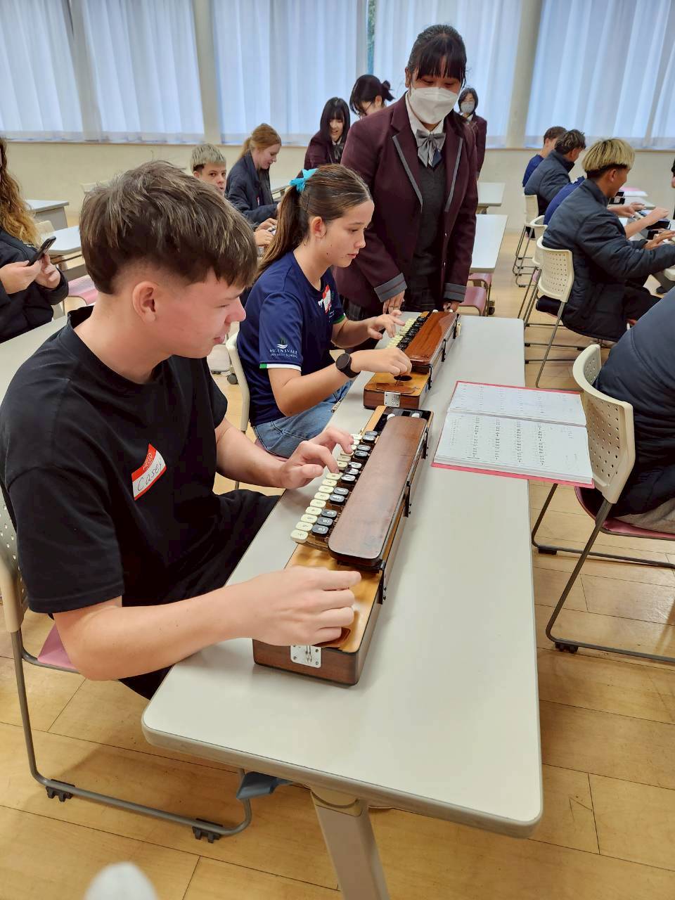 コロナ禍以降、初めての国際交流はオーストラリアの学校とのサッカー交流となりました。今回の交流は、6年前にも同じマネジメント会社を通じて行った国際交流の再開となりました。まず、12月5日(金)の夕方にPalm Beach高校のU16サッカーチームと時之栖裾野グラウンドで交流試合を行いました。気温4℃という寒さの中、両校の選手たちは全力でプレーし、試合後にはユニフォームやギフトを交換して親睦を深めました。翌週の12月8日(月)には、Helensvale State High Schoolの生徒が昼前から本校を訪れ、4限目の授業から放課後の部活動体験まで、さまざまな活動を通じて本校生徒と交流しました。多くの生徒がオーストラリアの高校生からプレゼントを受け取り、笑顔があふれる時間となりました。放課後の部活動では、吹奏楽部、茶道部、華道部、大正琴同好会の生徒たちが、オーストラリアの高校生らを温かく迎え、日本文化の体験をサポートしました。吹奏楽部による演奏体験では、楽器の音色や演奏方法を紹介し、音楽を通じた交流が生まれました。茶道部と華道部では、日本ならではの「おもてなしの心」を感じられる体験を提供し、茶を点てる所作や花を生ける美しさに、オーストラリアの生徒たちは興味津々の様子でした。さらに、大正琴同好会では、伝統楽器の音色に触れながら、実際に弾いてみる体験も行われ、笑顔と驚きがあふれる時間となりました。こうした文化交流を通じて、言葉の壁を越えたコミュニケーションが生まれ、生徒たちにとっても貴重な国際交流の機会となりました。12月9日(火)には、前日に交流したHelensvale高校のU16サッカーチームと裾野グラウンドで試合を行いました。顔見知りになったことで、試合後の交流はより楽しく、互いに名前入りのウェアを交換しながら別れを惜しむ姿が見られました。今回の交流を通じて、「もっと英語を話せたら、もっと仲良くなれたのに」という前向きな気持ちが本校生徒に芽生えました。この経験を、今後の英語学習への意欲につなげてほしいと思います。