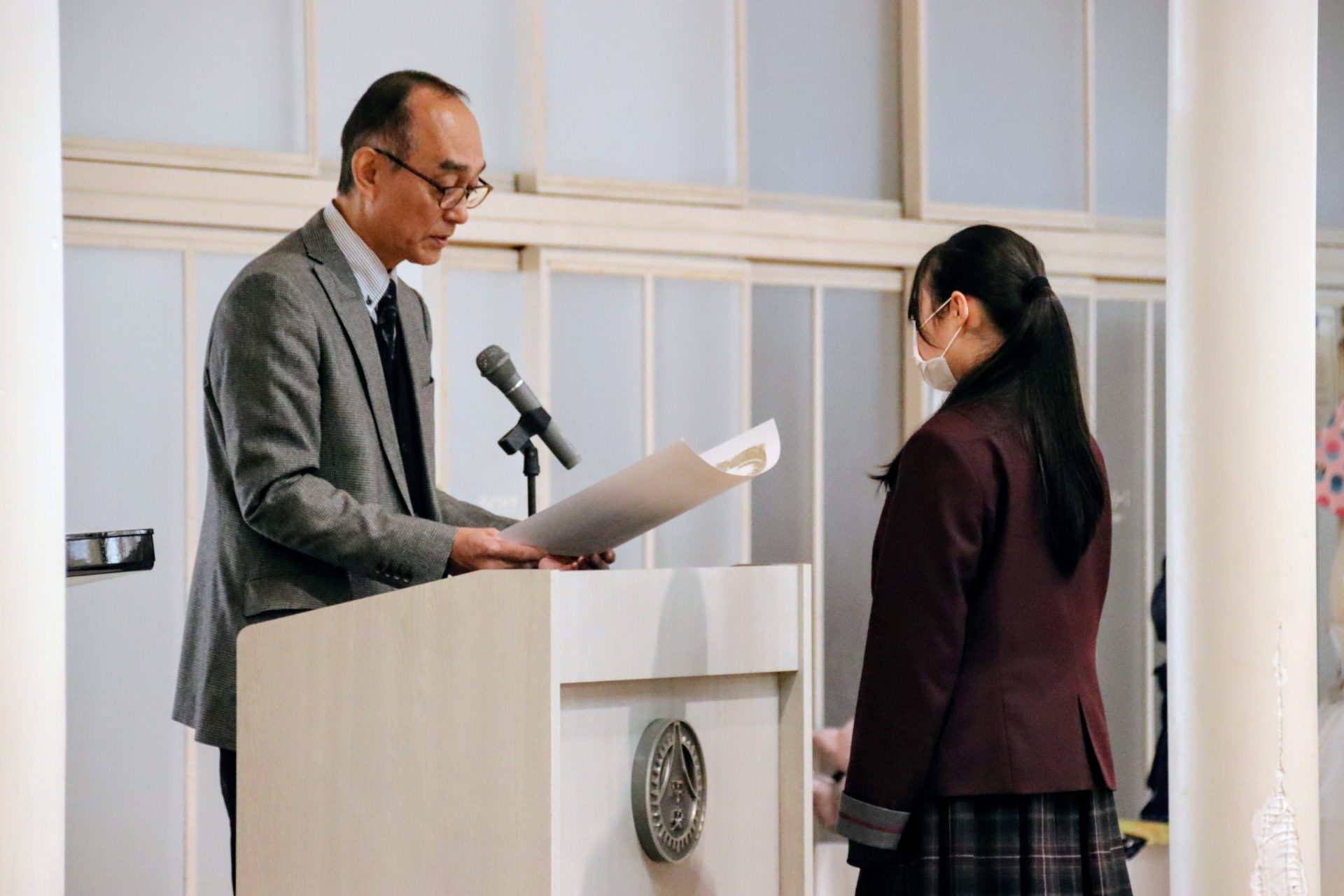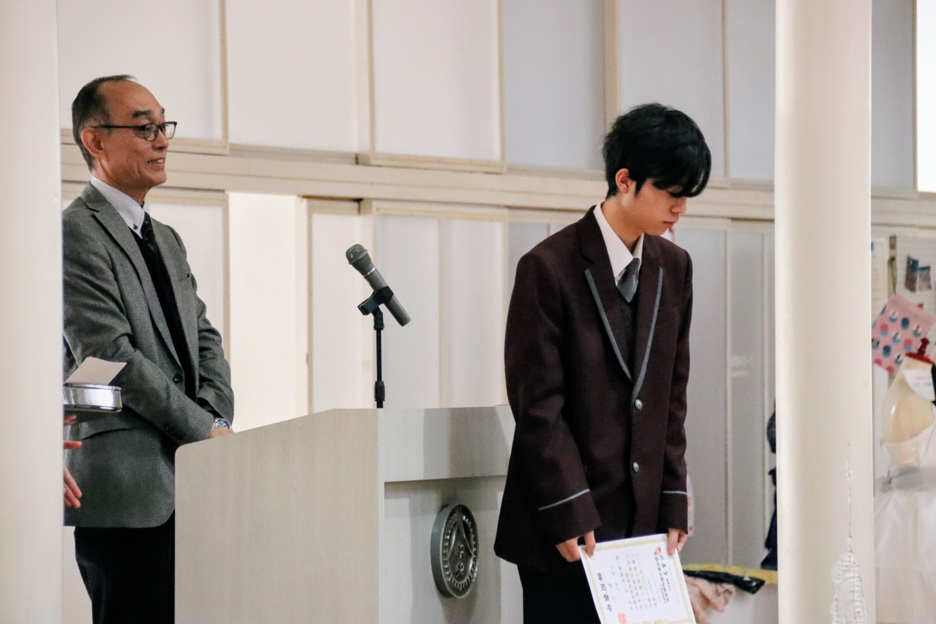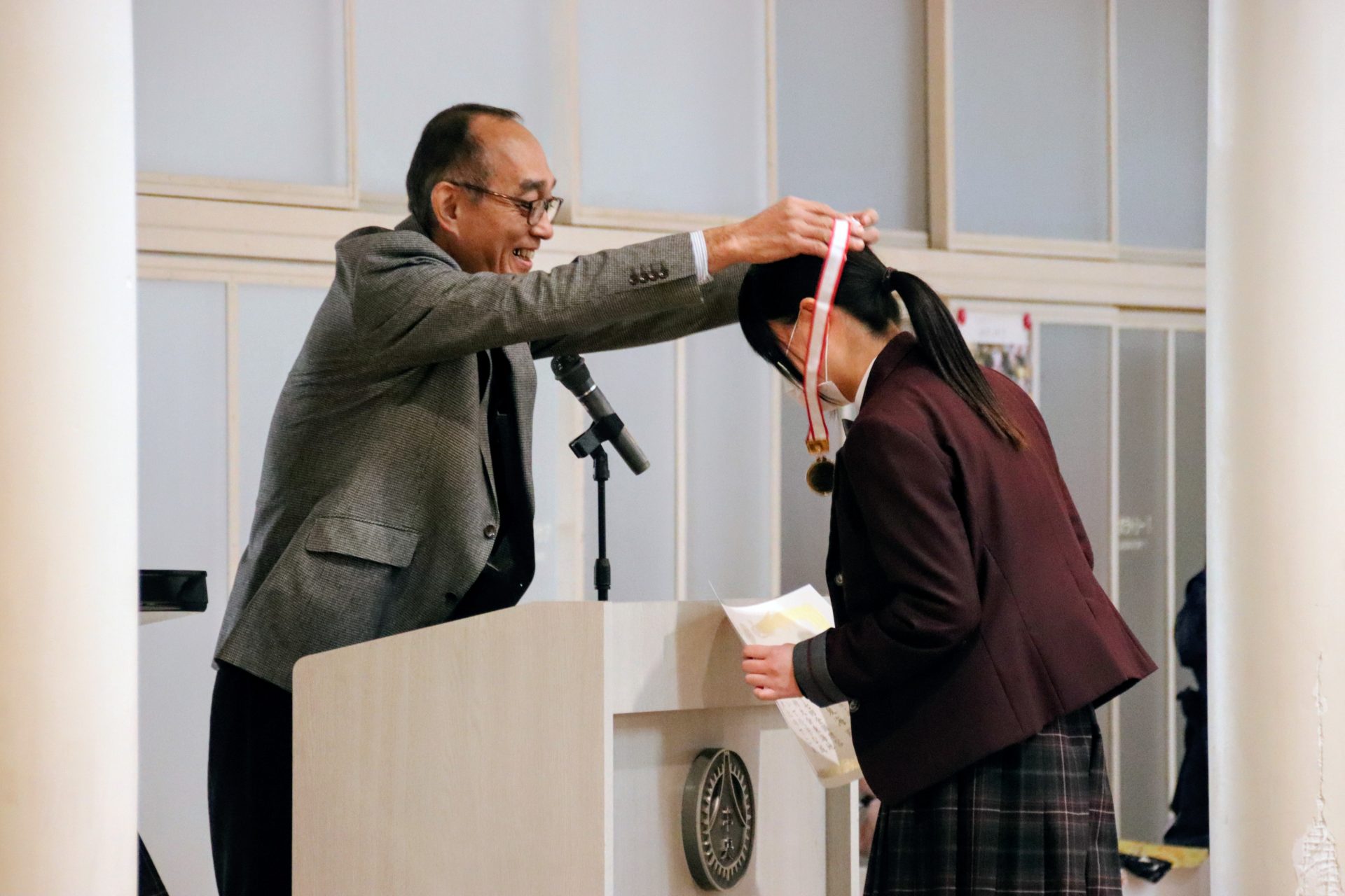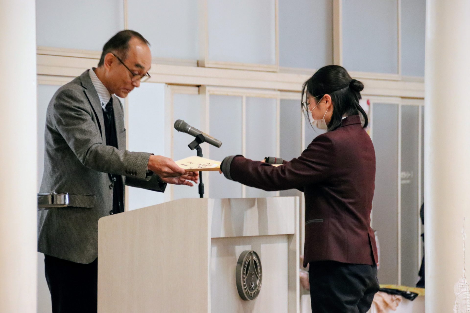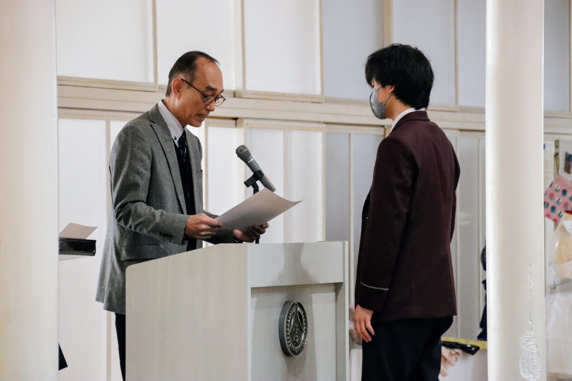 12月19日(金)に2学期の終業式が行われました。校長式辞では、メジャーリーガー・大谷翔平選手の活躍や、2年連続となった日本人のノーベル賞受賞といった明るいニュースから、緊迫する世界情勢、日本初の女性総理大臣誕生という歴史的な転換点まで、この1年を象徴する出来事に触れながら今年1年を振り返りました。また、県内の市長選や牧之原市で発生した竜巻被害など、身近なニュースにも触れ「社会の動きに敏感になり、自分に何ができるかを考えることの大切さ」が生徒たちに伝えられました。教務課からは成績優秀者の発表があり、全校生徒から称賛の拍手が送られました。生徒課からは、道路交通法の改正に伴う自転車の運転マナー等について、命を守るための具体的な話がありました。終業式後には、各種検定や部活動で顕著な成績を収めた生徒たちが表彰されました。最後に行われた軽音楽部の壮行会では、新人大会での県大会出場を決めたメンバーに対し、生徒会長から力強いエールが送られました。冬休みは課題もありますが、まずは心身をしっかりと休めてください。家族や親戚と過ごす時間を大切にし、新年、また元気に登校する皆さんに会えるのを楽しみにしています。