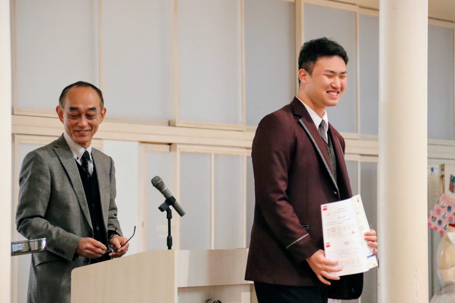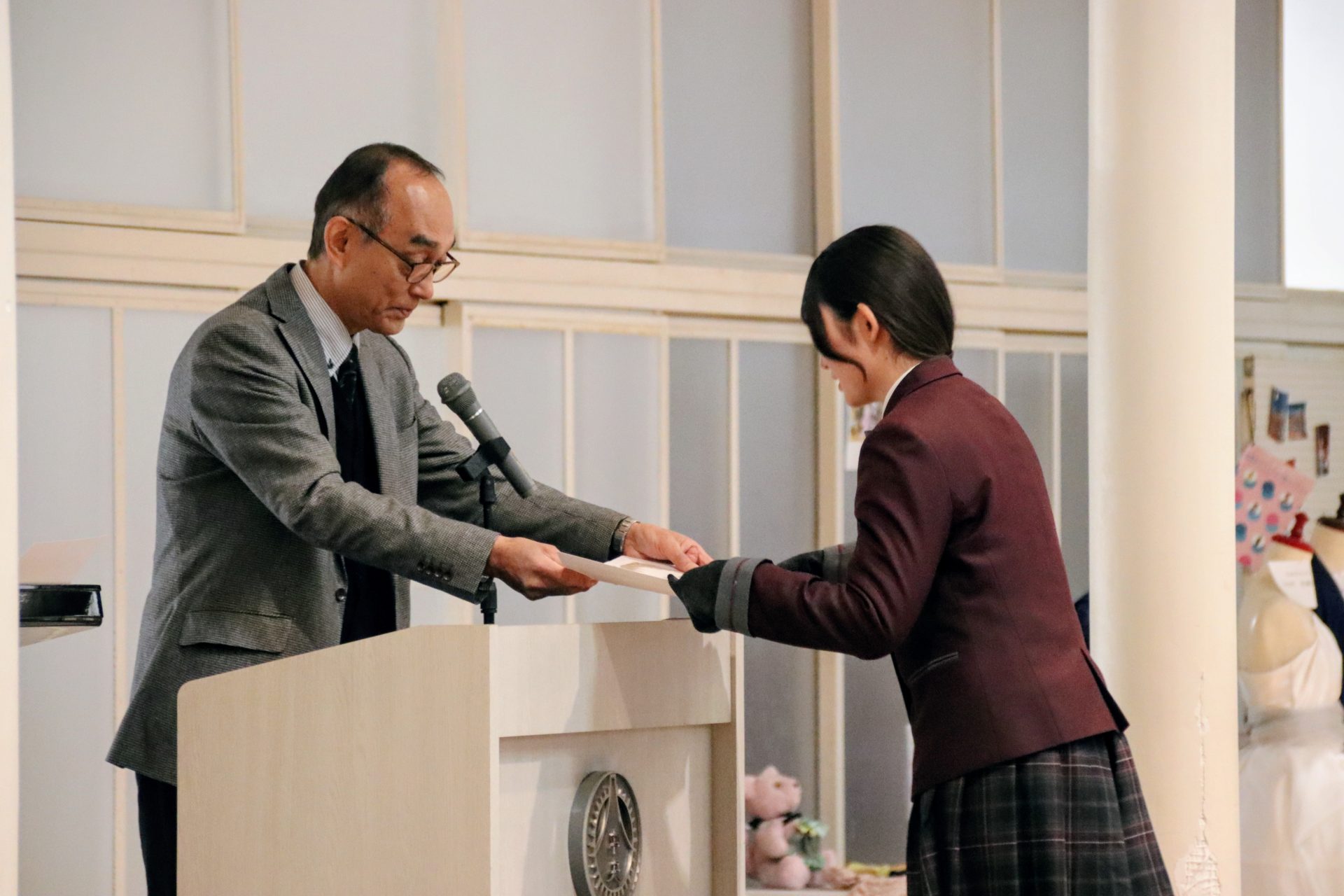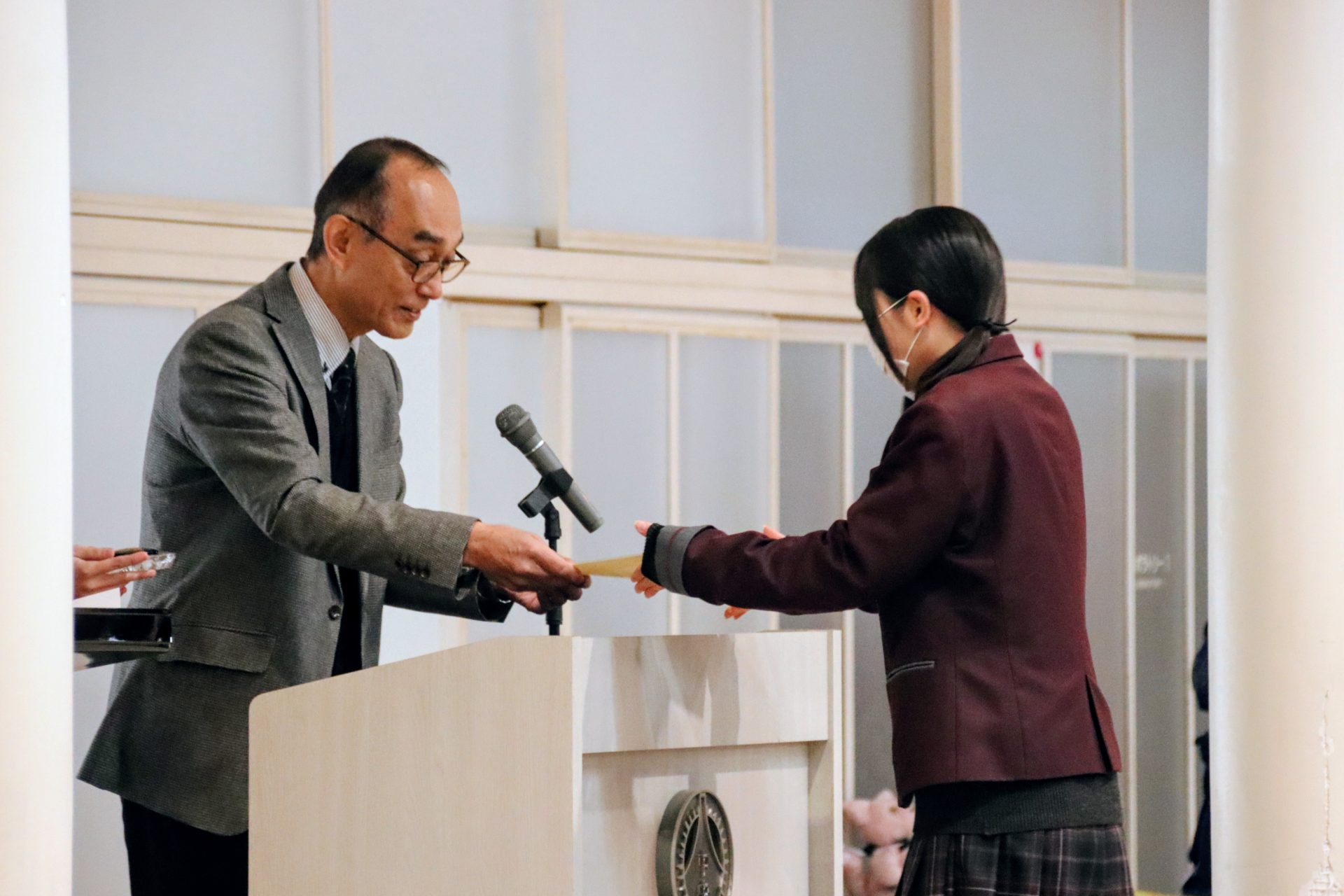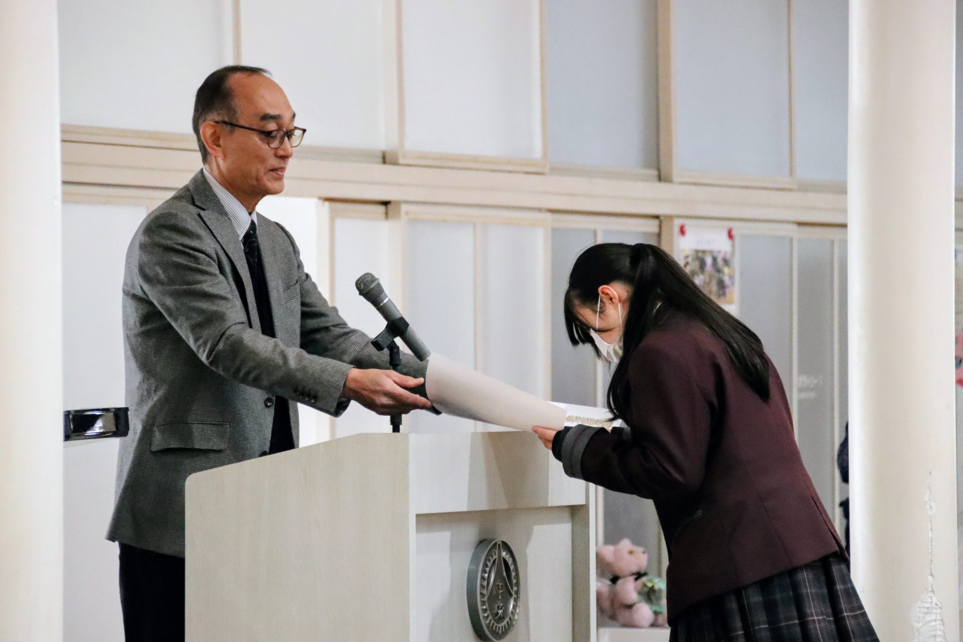 12月19日(金)に2学期の終業式が行われました。校長式辞では、メジャーリーガー・大谷翔平選手の活躍や、2年連続となった日本人のノーベル賞受賞といった明るいニュースから、緊迫する世界情勢、日本初の女性総理大臣誕生という歴史的な転換点まで、この1年を象徴する出来事に触れながら今年1年を振り返りました。また、県内の市長選や牧之原市で発生した竜巻被害など、身近なニュースにも触れ「社会の動きに敏感になり、自分に何ができるかを考えることの大切さ」が生徒たちに伝えられました。教務課からは成績優秀者の発表があり、全校生徒から称賛の拍手が送られました。生徒課からは、道路交通法の改正に伴う自転車の運転マナー等について、命を守るための具体的な話がありました。終業式後には、各種検定や部活動で顕著な成績を収めた生徒たちが表彰されました。最後に行われた軽音楽部の壮行会では、新人大会での県大会出場を決めたメンバーに対し、生徒会長から力強いエールが送られました。冬休みは課題もありますが、まずは心身をしっかりと休めてください。家族や親戚と過ごす時間を大切にし、新年、また元気に登校する皆さんに会えるのを楽しみにしています。