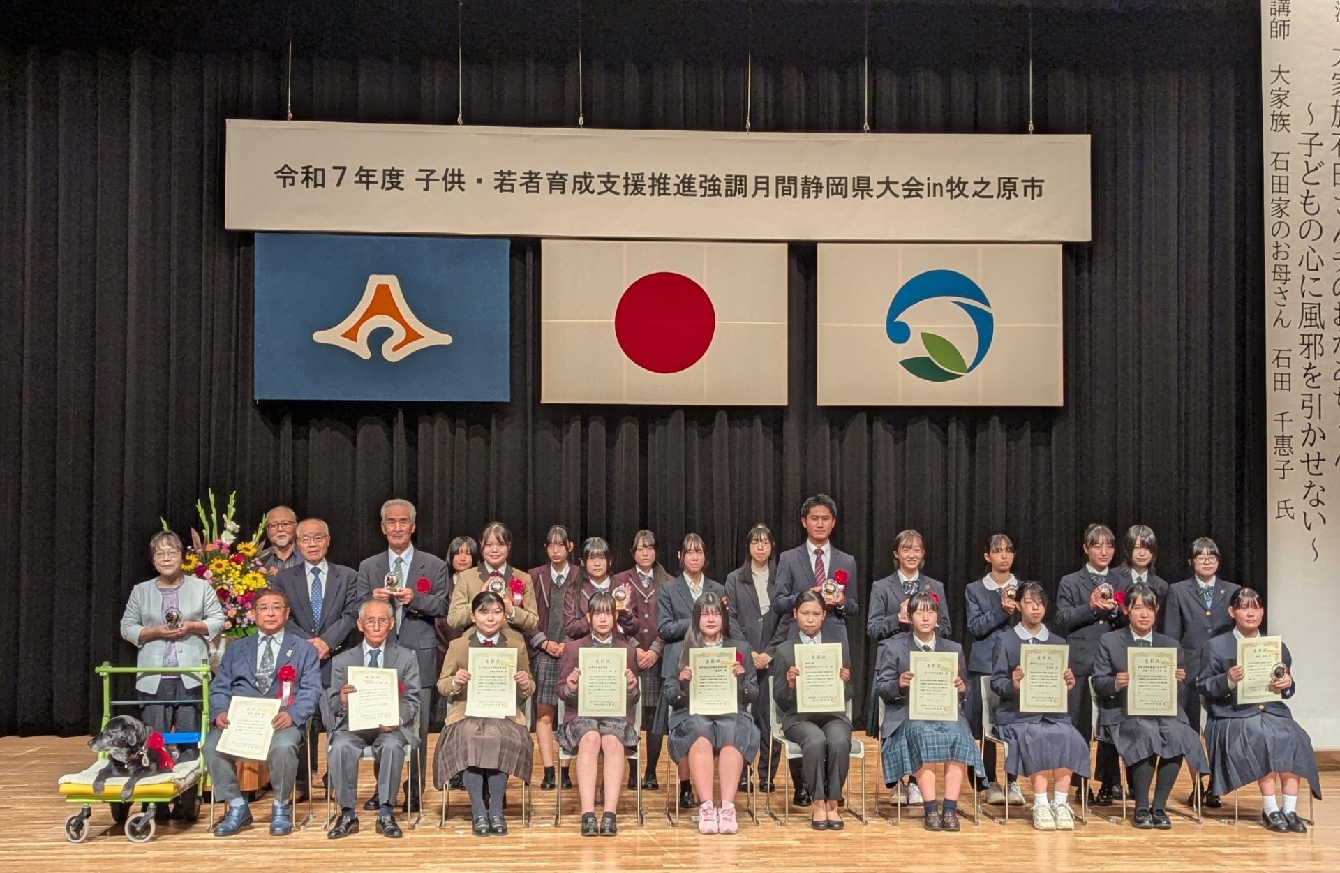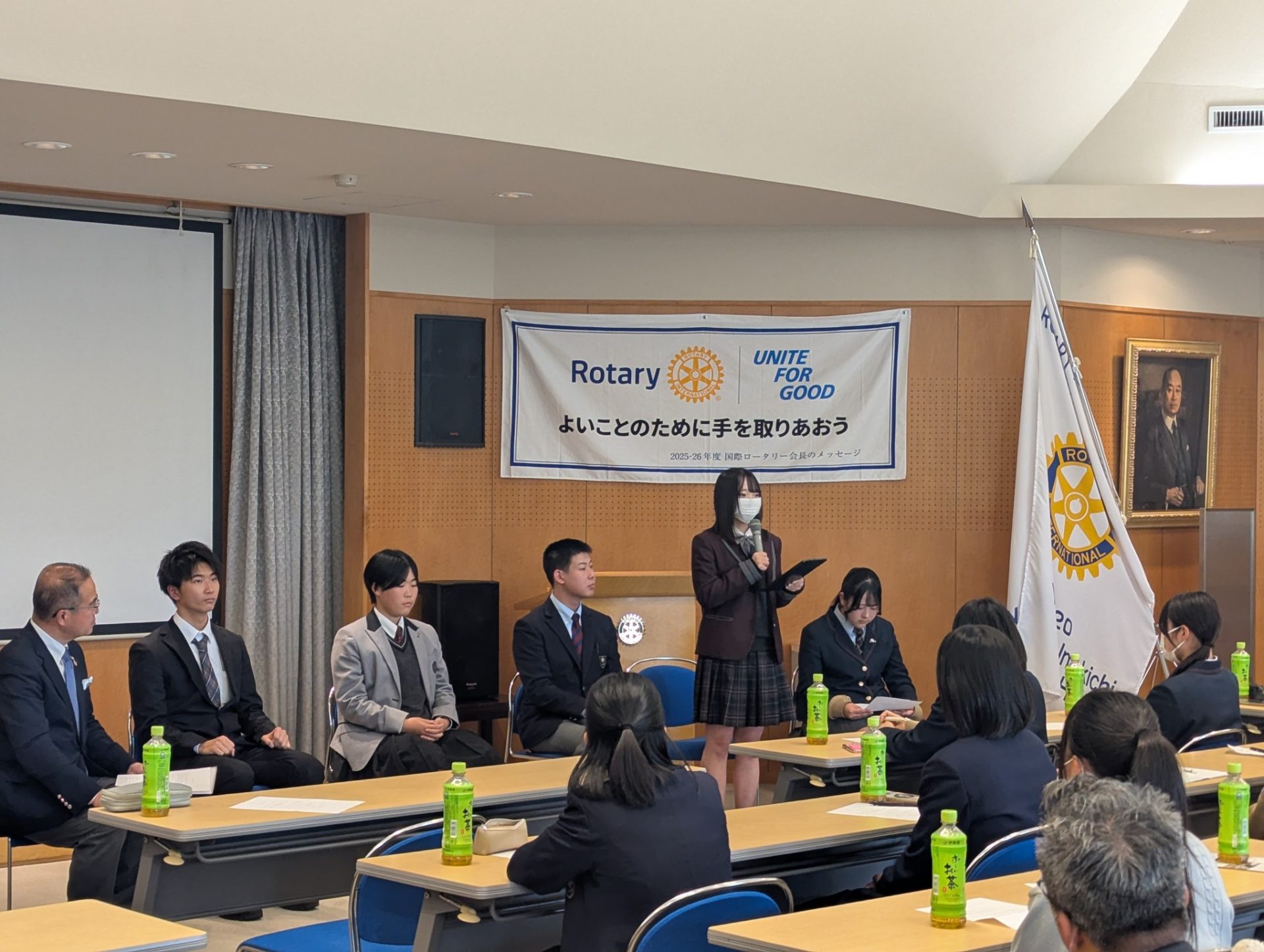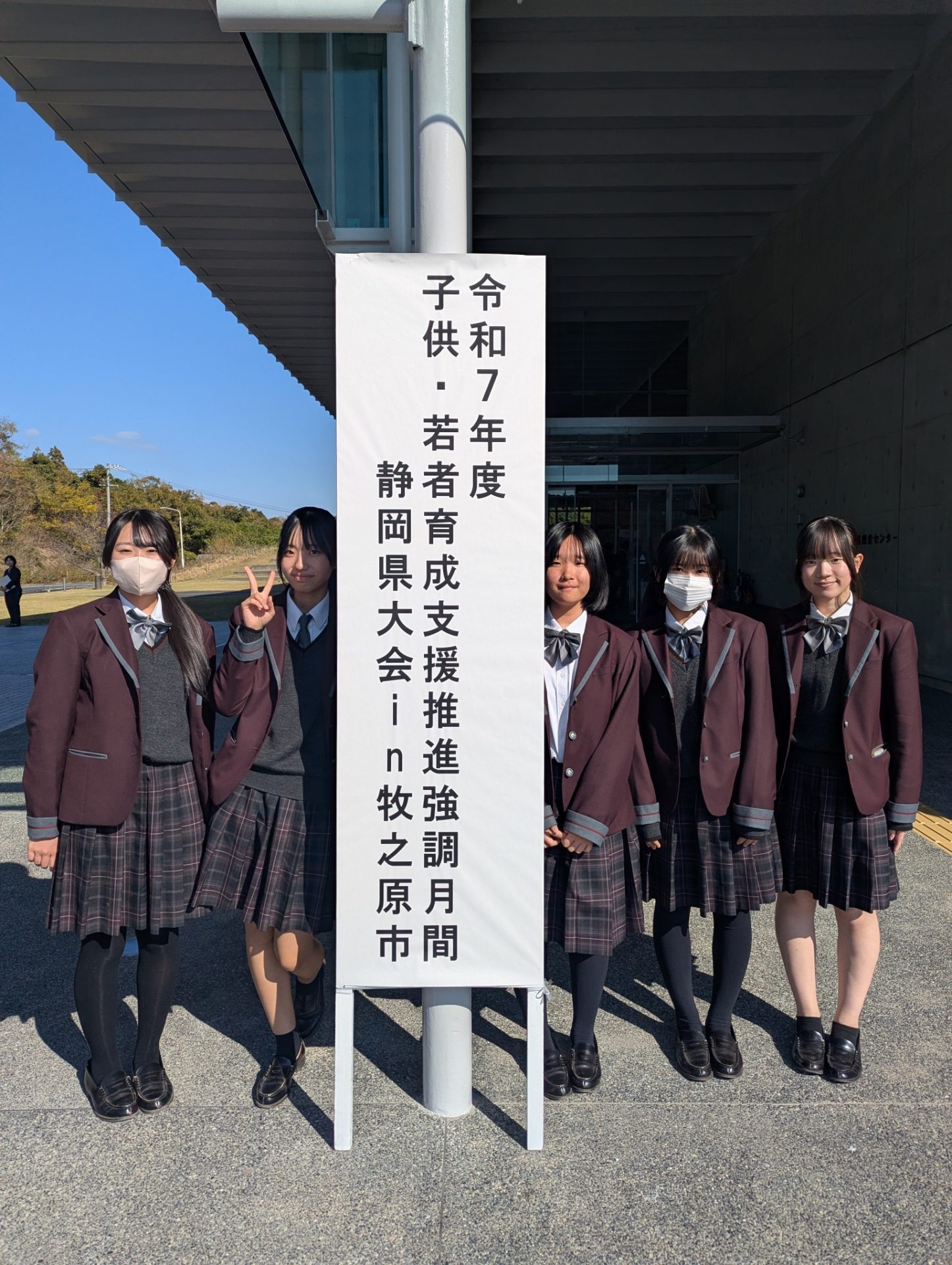 インターアクト部が令和7年度子供・若者育成支援推進強調月間静岡県大会「青少年団体等の顕彰」青少年団体の部にて表彰されました。日頃の地域貢献活動を評価していただき、県内9つの青少年団体のうち本校インターアクト部が受賞となり、その表彰式が11月22日(土)に牧之原市相良総合センターにて行われました。野秋奈央さん(2年・中郷中出身)は「今回表彰していただいたことを大変嬉しく思います。部員皆の頑張りで取ることができた賞だと感じています。これからもボランティア活動を通して地域に貢献していきたいです」と話してくれました。また、11月29日(土)には米山梅吉記念館を訪問し、ロータリーの創始者である米山梅吉の生涯やロータリーの歴史を学びました。本校生徒の他に日大三島高校、知徳高校、愛国学園の学生が参加し、各校の活動紹介、その後代表者ディスカッションとして、地域における課題など様々な事柄について、互いの意見を尊重しながら議論しました。他校の活動や考えに刺激を受け、今後の活動にプラスとなる時間になりました。代表者ディスカッションに参加した部長の中田姫琉(3年・熱海中出身)さんは「地域課題や国際活動について意見交換を行いながら新たな視点を得ることができ、有意義な学びとなりました。さまざまな意見から大きな刺激を受け、大学進学後の活動に活かしていきたいです」と話してくれました。12月12日(金)には、サントムーン柿田川にてNHK海外たすけあい街頭募金活動を行いました。沼津北ロータリークラブの方々と協力しながら、通行人に明るく募金の呼び掛けを行い、「国際理解・親善」や「奉仕」について考え、世界で困っている人への支援を自分たちの行動につなげる機会とすることができました。今後も地道に地域貢献活動を継続していきたいと思います。