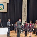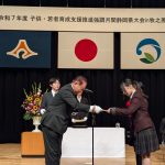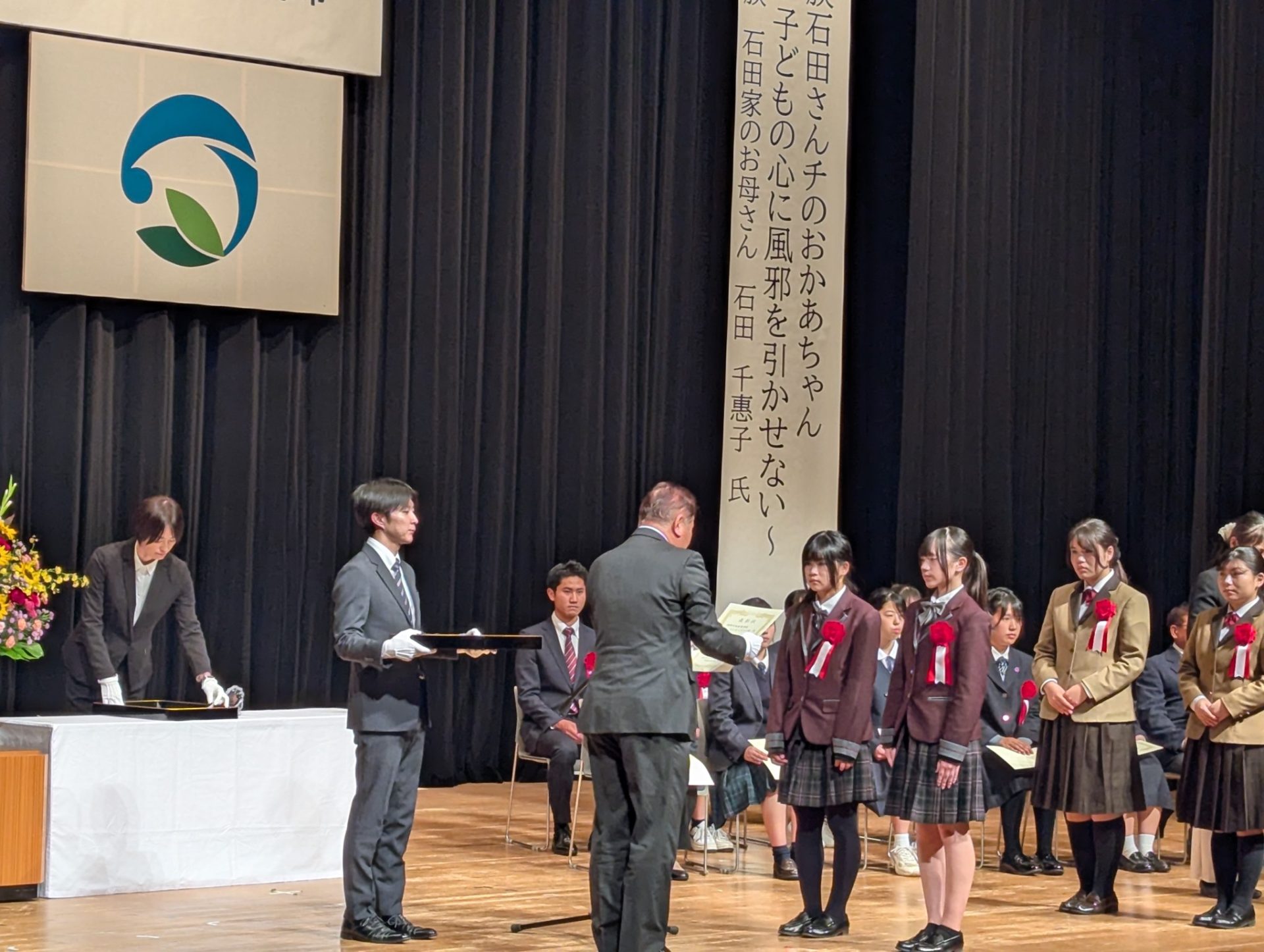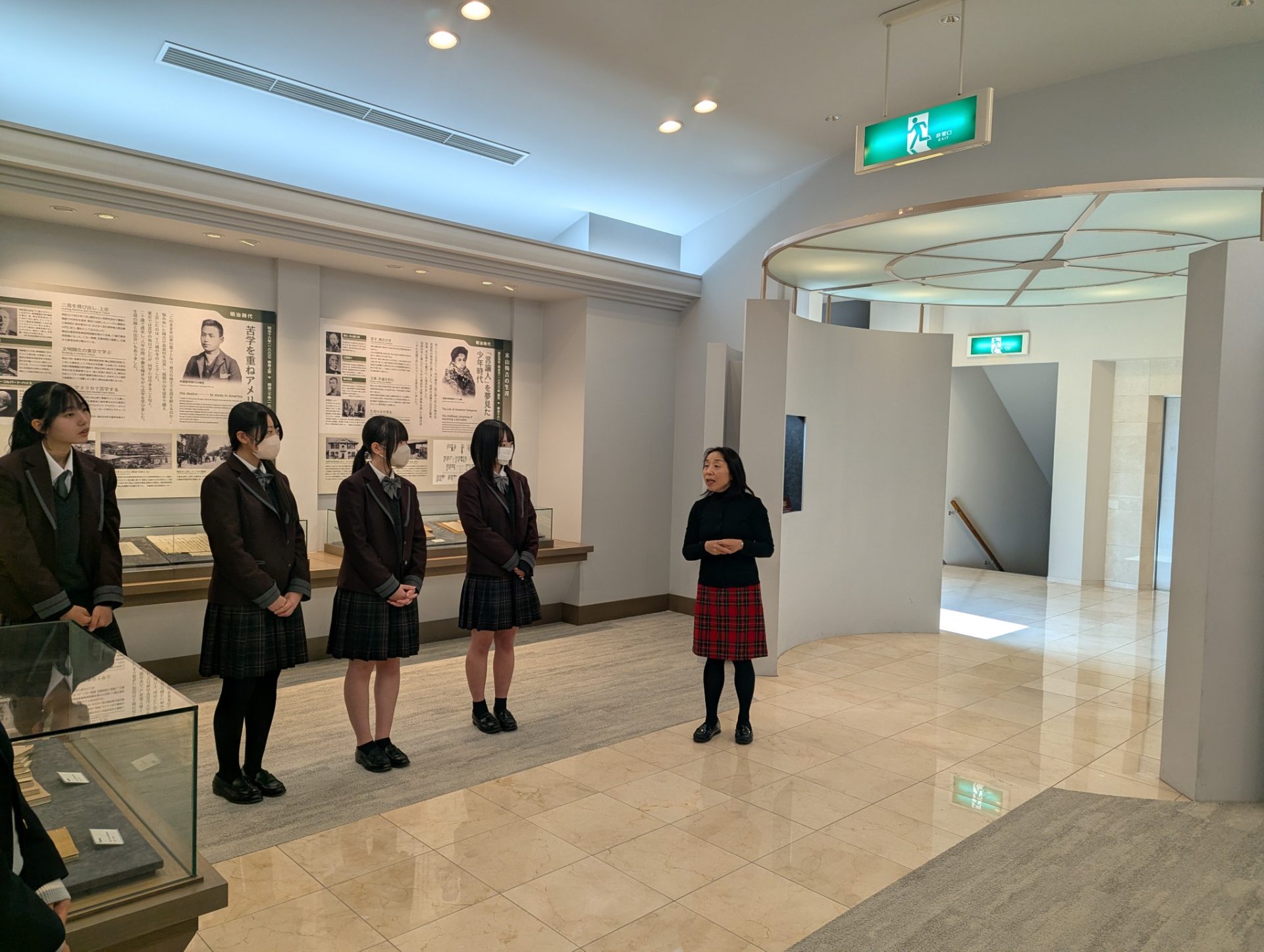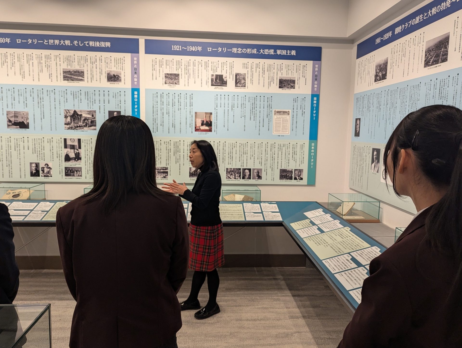 インターアクト部が令和7年度子供・若者育成支援推進強調月間静岡県大会「青少年団体等の顕彰」青少年団体の部にて表彰されました。日頃の地域貢献活動を評価していただき、県内9つの青少年団体のうち本校インターアクト部が受賞となり、その表彰式が11月22日(土)に牧之原市相良総合センターにて行われました。野秋奈央さん(2年・中郷中出身)は「今回表彰していただいたことを大変嬉しく思います。部員皆の頑張りで取ることができた賞だと感じています。これからもボランティア活動を通して地域に貢献していきたいです」と話してくれました。また、11月29日(土)には米山梅吉記念館を訪問し、ロータリーの創始者である米山梅吉の生涯やロータリーの歴史を学びました。本校生徒の他に日大三島高校、知徳高校、愛国学園の学生が参加し、各校の活動紹介、その後代表者ディスカッションとして、地域における課題など様々な事柄について、互いの意見を尊重しながら議論しました。他校の活動や考えに刺激を受け、今後の活動にプラスとなる時間になりました。代表者ディスカッションに参加した部長の中田姫琉(3年・熱海中出身)さんは「地域課題や国際活動について意見交換を行いながら新たな視点を得ることができ、有意義な学びとなりました。さまざまな意見から大きな刺激を受け、大学進学後の活動に活かしていきたいです」と話してくれました。12月12日(金)には、サントムーン柿田川にてNHK海外たすけあい街頭募金活動を行いました。沼津北ロータリークラブの方々と協力しながら、通行人に明るく募金の呼び掛けを行い、「国際理解・親善」や「奉仕」について考え、世界で困っている人への支援を自分たちの行動につなげる機会とすることができました。今後も地道に地域貢献活動を継続していきたいと思います。