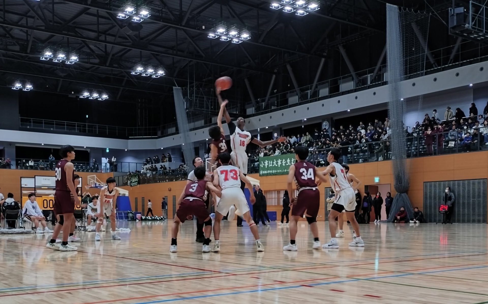 男子バスケットボール部が新人戦東部地区大会を順当に勝ち上がりました。東部大会の決勝は韮山高校との一戦となり、試合は一進一退の攻防が続く、息をのむ大接戦となりました。選手たちは最後まで粘り強くゴールを狙い続けましたが、あと一歩及ばず、71-72というわずか1点差で惜しくも準優勝という結果になりました。惜しくも優勝を逃しましたが、東部2位で県大会に進みます。新人戦県大会は1月24日(土)から始まります。引き続き応援よろしくお願いします。