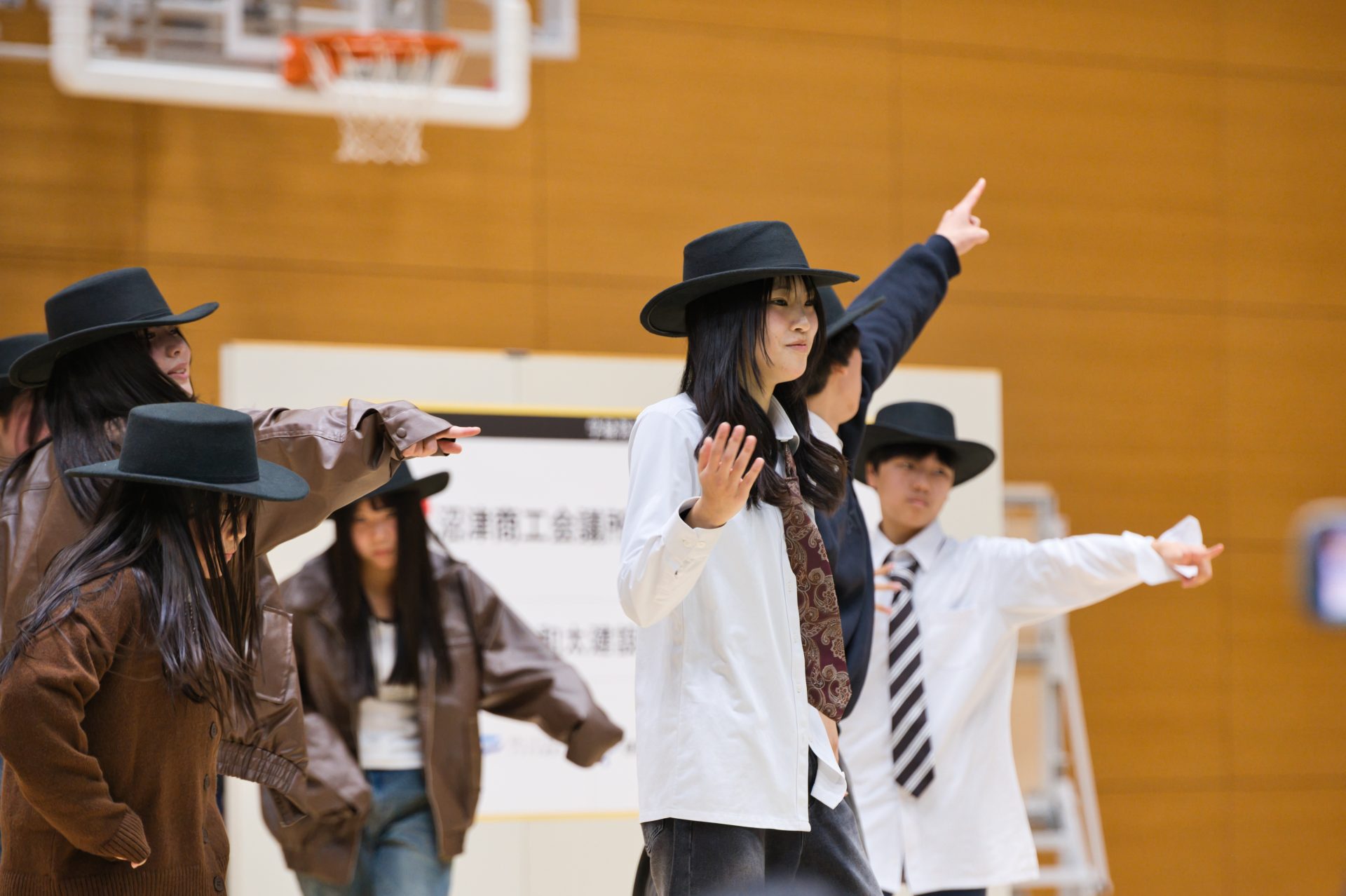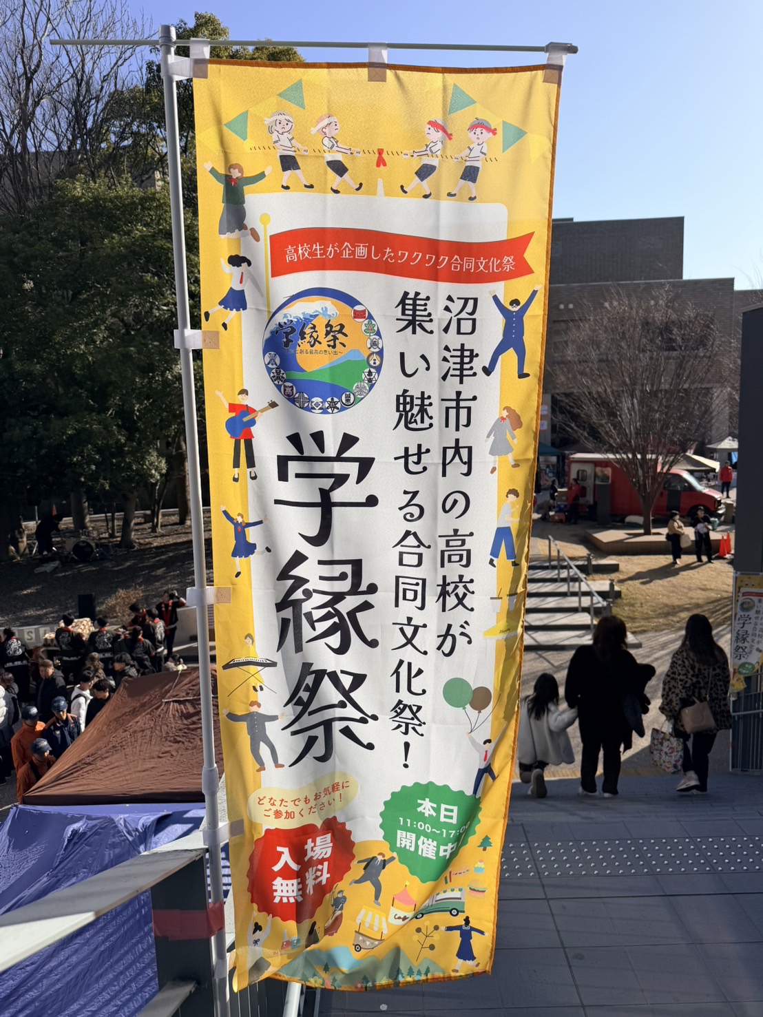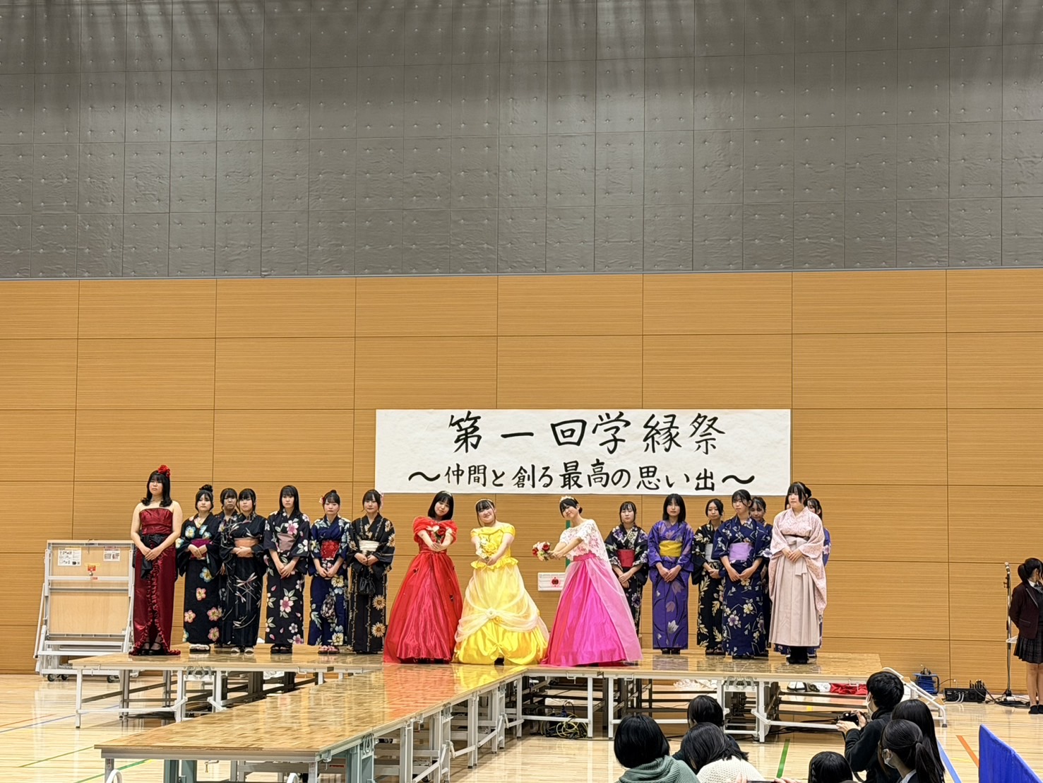 沼津市内の高校が学校の枠を超えて集う合同文化祭「学縁祭(がくえんさい)~仲間と創る最高の思い出~」が開催されました。沼津市内の高校13校が香陵アリーナに集結し、本校は生徒会執行部の生徒たちが学縁祭スタッフとして企画・運営に携わりました。軽音楽部とダンス部もステージパフォーマンスを披露し、生活文化コースもファッションショーでイベントを盛り上げました。会場には高校生、中学生、地域の方々が約2,000人が来場し、大盛況となりました。高校生同士が力を合わせて作る、地域活性化の可能性の大きさを感じる、魅力溢れるイベントとなりました。