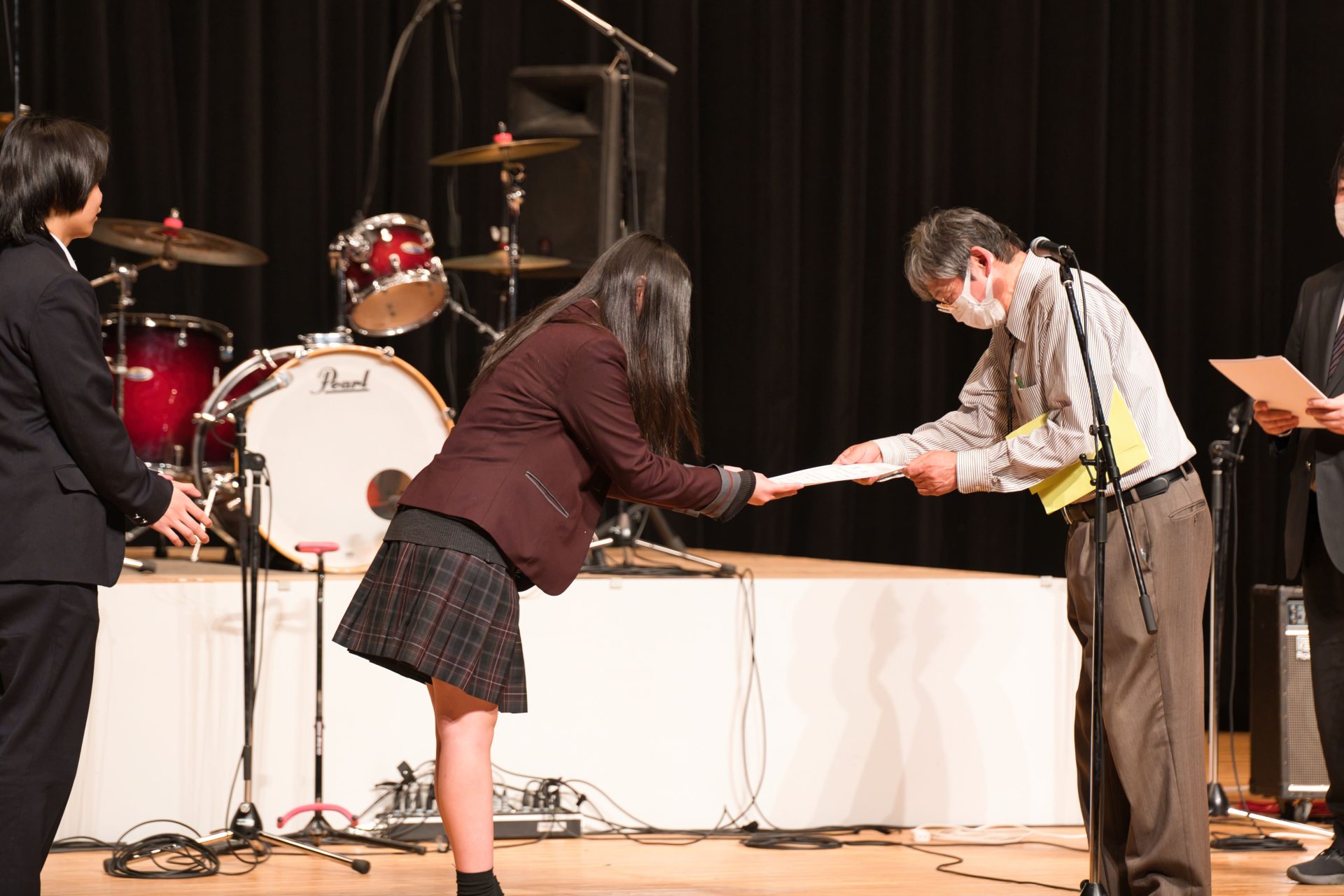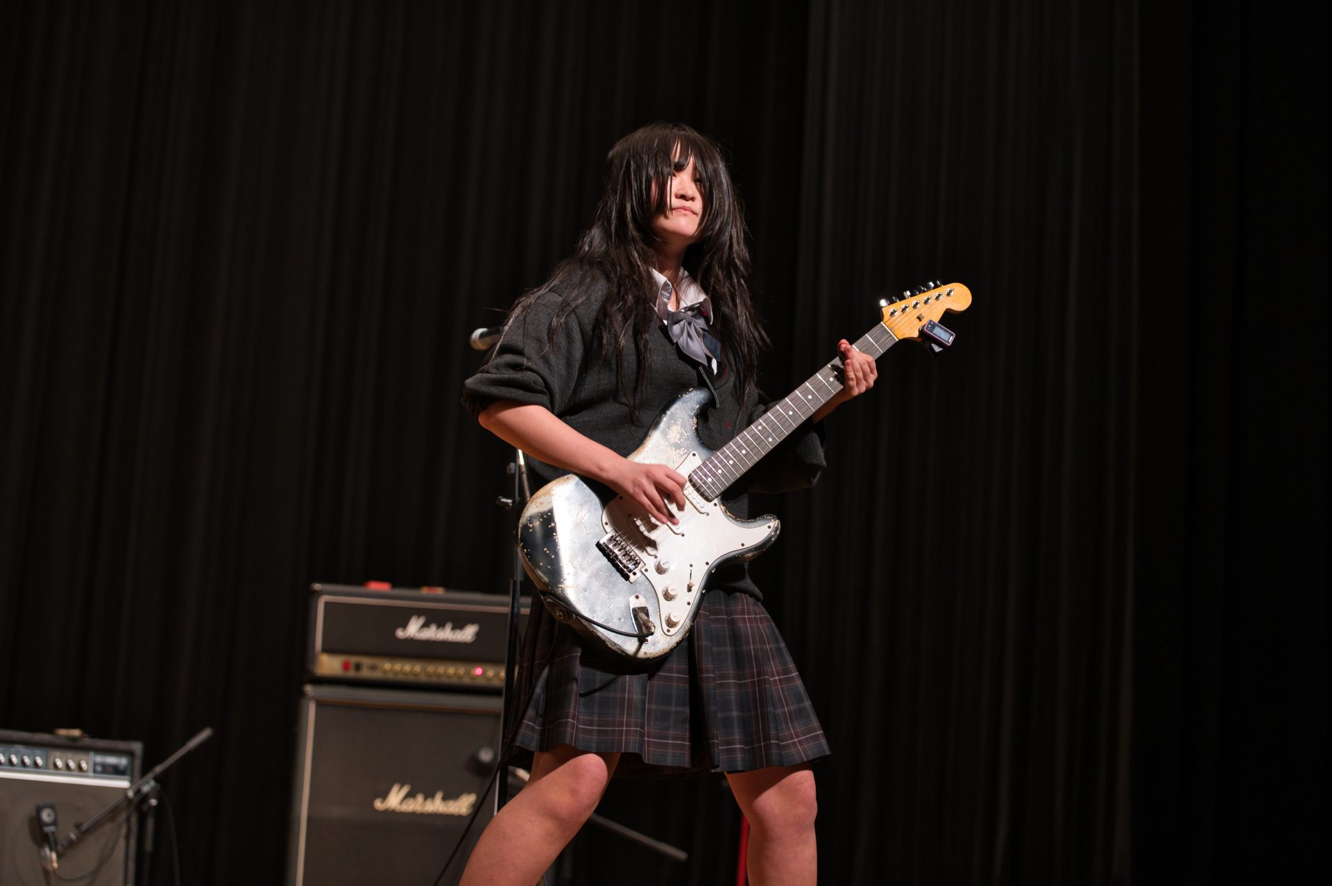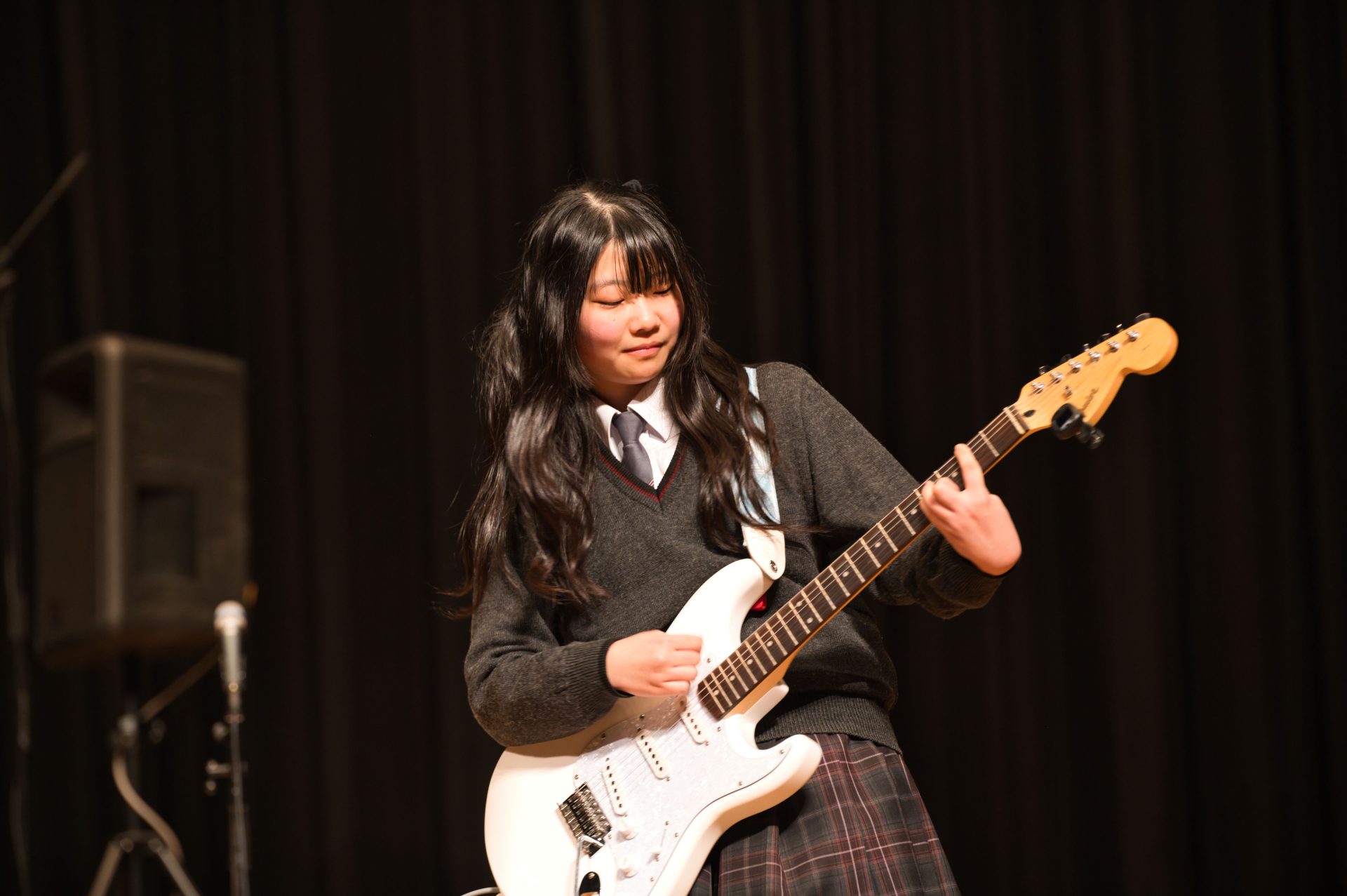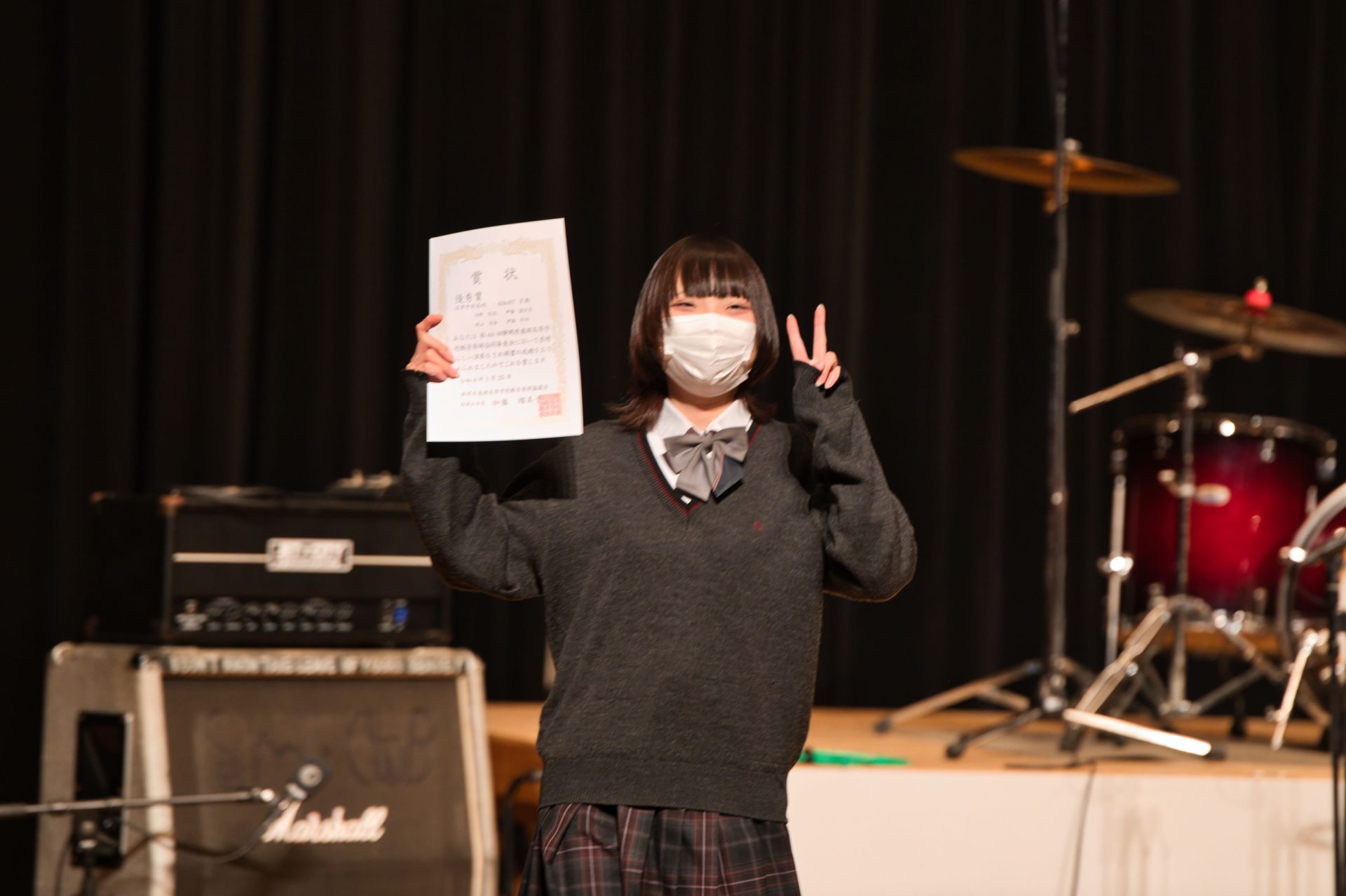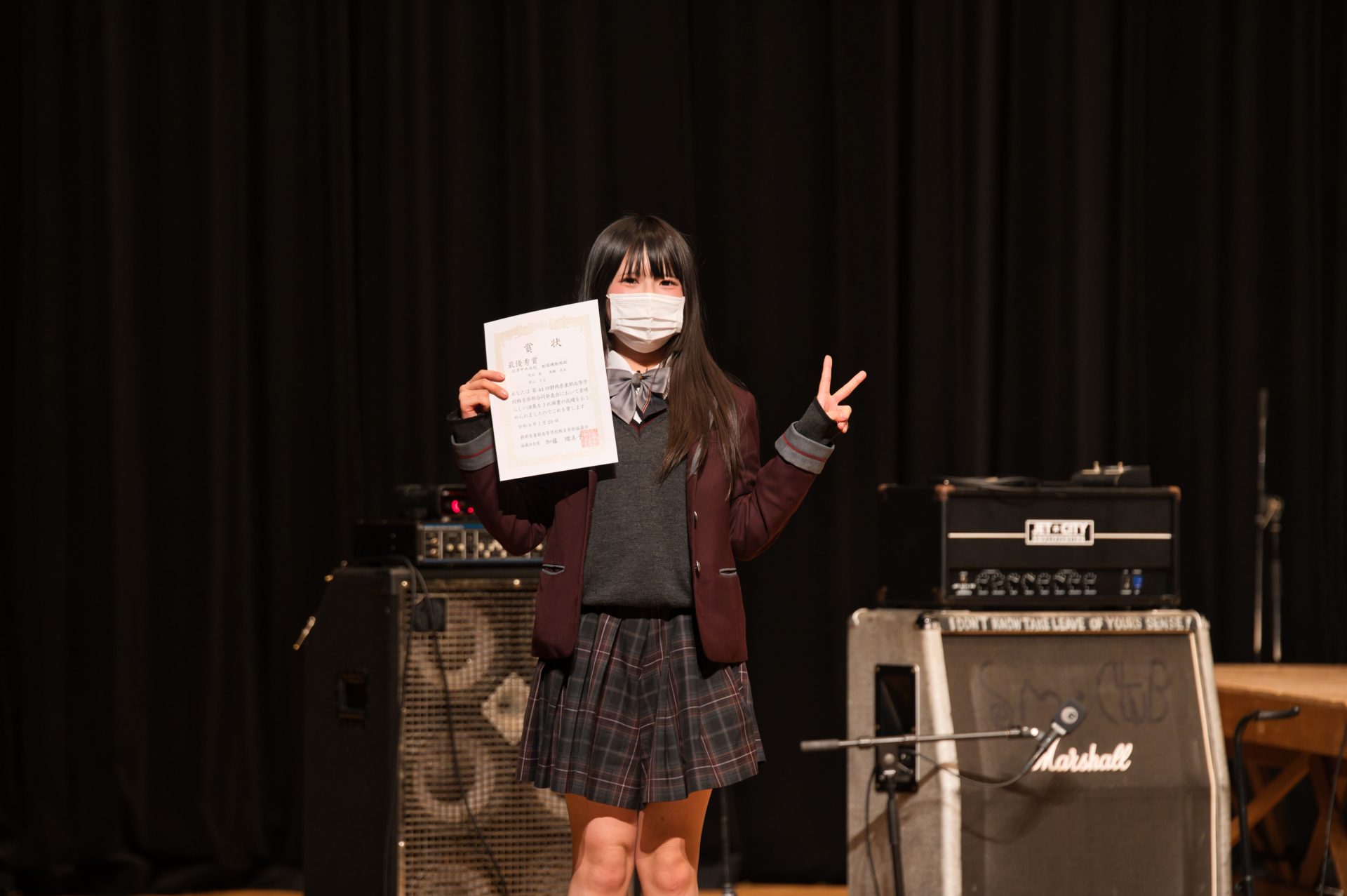 1月25日(日)に沼津市民文化センター小ホールで第44回静岡県東部軽音楽部合同発表会が開催されました。本校からは5バンドが出場し、日頃の練習の成果を存分に発揮しました。結果は制服機動隊が最優秀賞、-459.67℉が優秀賞を受賞するという素晴らしい結果を収めました。また、個人賞として制服機動隊の寺沢萠さん(2年・門池中出身)がベストボーカリスト賞を受賞し、会場から大きな拍手が送られました。受賞した両バンドは、これまでにも他大会での受賞歴があり、日々の練習でも互いに刺激を受けながら切磋琢磨している様子が見られ、今後のさらなる活躍にも大いに期待が高まります。また、惜しくも受賞には至らなかったバンドも、完成度の高い演奏で会場を盛り上げ、来場者に強い印象を残しました。それぞれのバンドが音楽への思いをステージで表現し、軽音楽部全体として充実した発表会となりました。